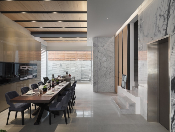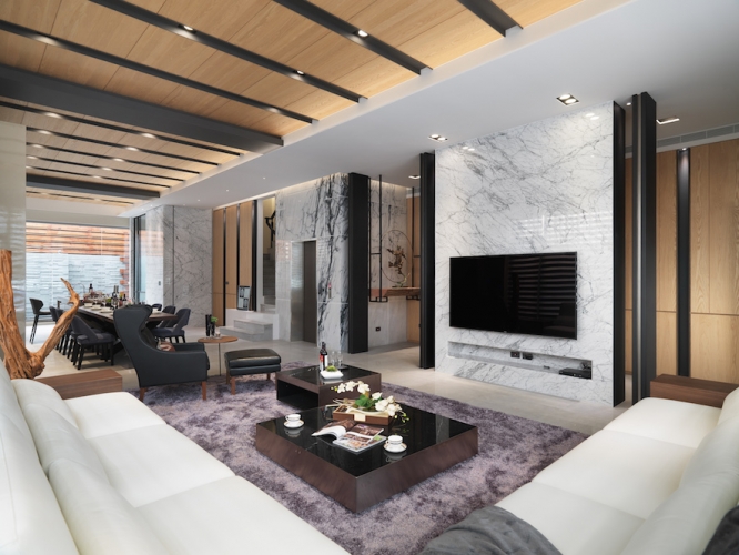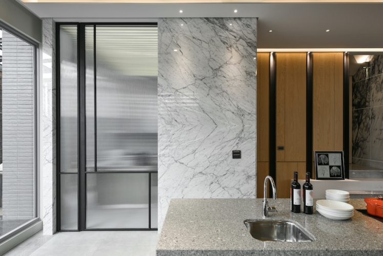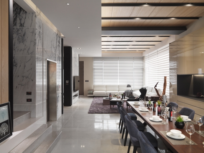 主要建材/ 大理石、鐵件、木皮、噴漆、平條紋玻璃、海島型木地板、織品、壁紙
