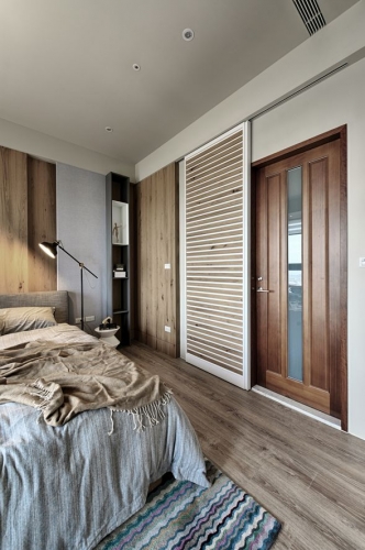 主要建材/ 進口壁紙、噴砂染色鐵刀木皮、古典鄉村白橡木風化板木皮、仿皮革紋系統板、檜木鋸痕自然拼、
