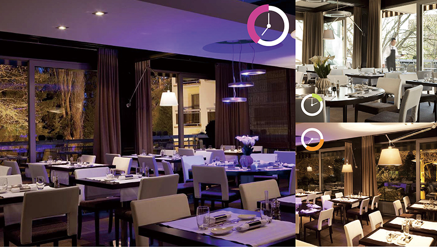 活動多元的私廚餐廳,在燈光氣氛上有高度的自動化控制要求. O+提供了多樣化情境,可快速切換餐廳氣氛及調整光線亮度, 滿足不同活動的光源需求.餐廳提供大型投影布幕供客戶活動使用, O+也能快速切換成影片教學模式。