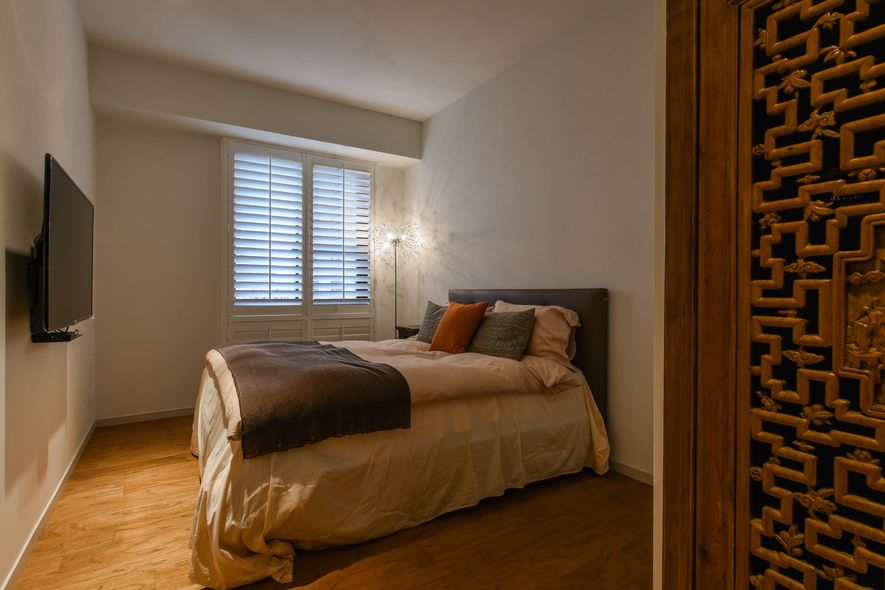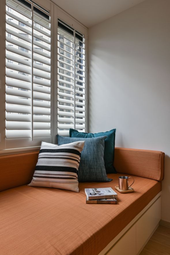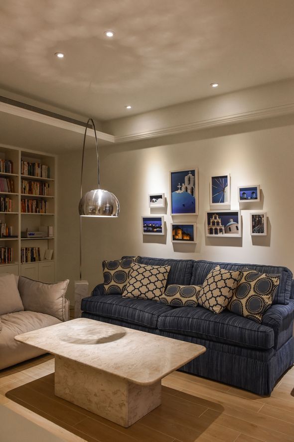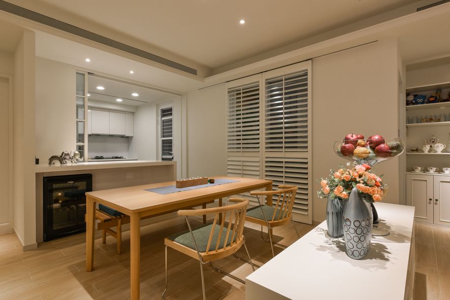 木色溫柔貫穿全室,大理石桌予人一股沁涼,兩者異質素材巧妙的搭配一曲合奏,宛如置身於希臘愛琴海般的心曠神怡,藍色以他千變的表情詮釋各式紋路之美,在四季更迭中,為您打造最恬靜宜人的居所。