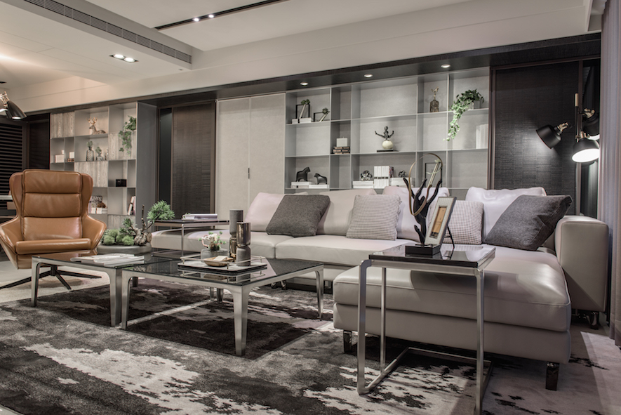 整體空間細緻且多樣化的質材配搭,古木紋大理石、灰白銀狐、低彩度的深淺木色、沙發與餐桌椅的皮色、桌腳與燈具的金屬光澤、晶亮的拋光地面等。當所有的異材質調性在相同空間裡,透過設計師的配搭功力,彼此間平衡協調,各安其序和諧並存。空間畫面就正在創造著風格,甚至創造經典,也創造歷史。