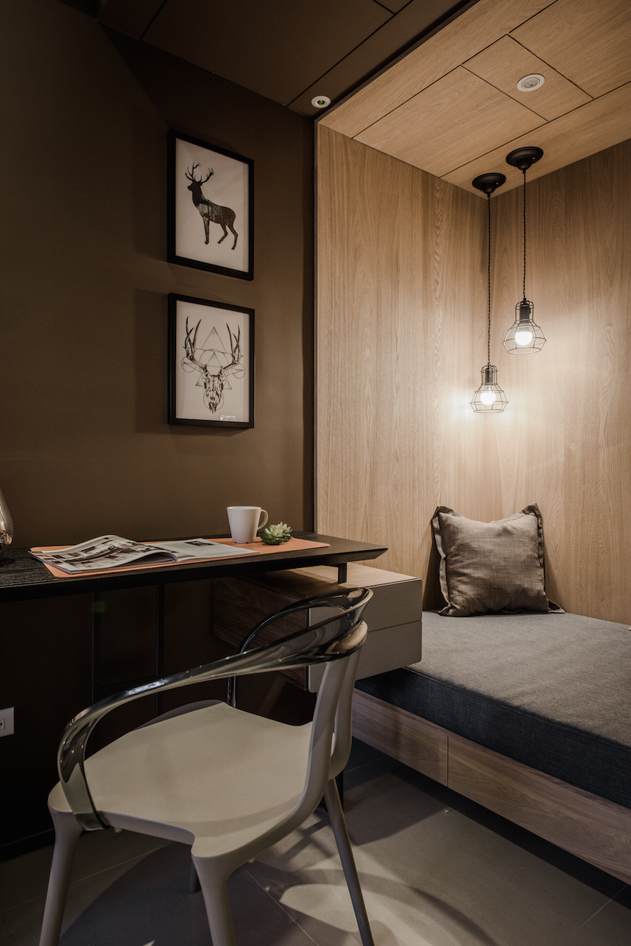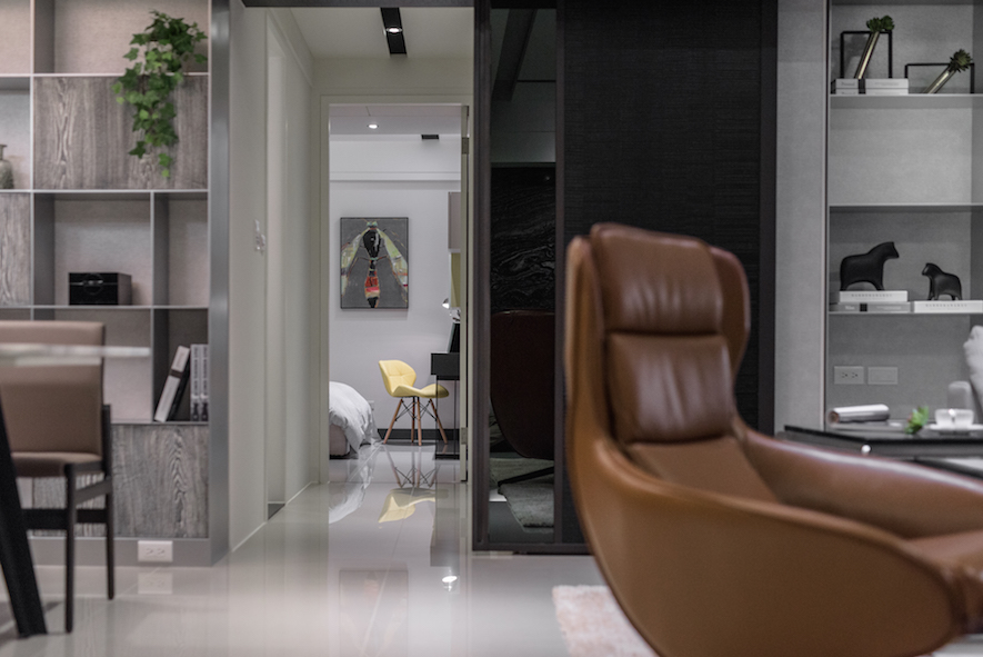 裝飾性的層次生活美學,將藝術文化的涵養,無形的貼近生活。在長沙發應和著一室的低彩色階中,跳出顯眼的卡布其諾色牛皮單椅,閒適亦活潑。