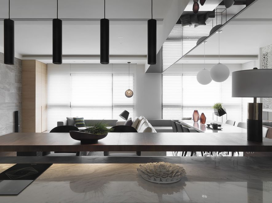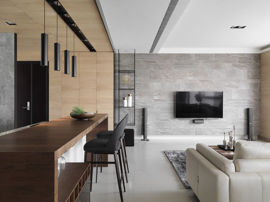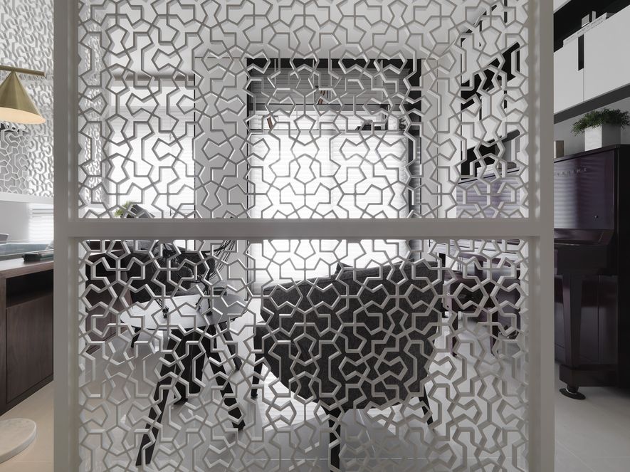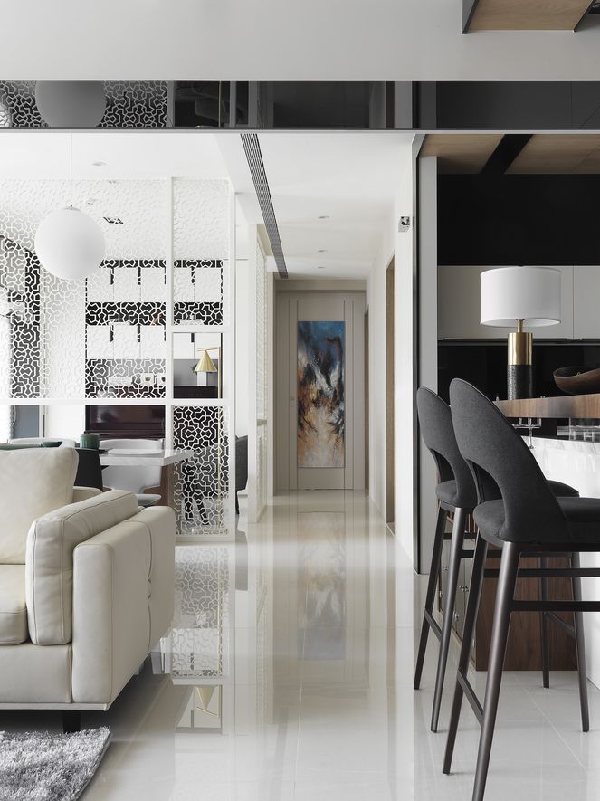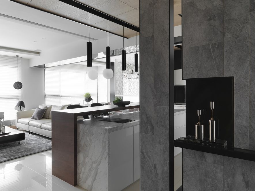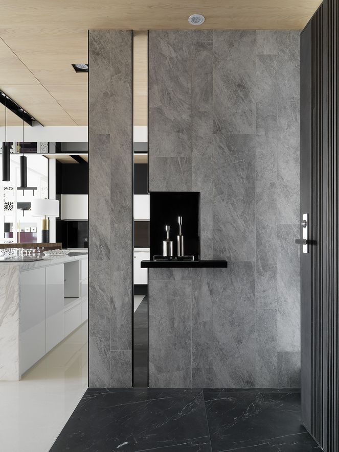 落下了另一道牆 加上了半穿透的玄關石材屏風
