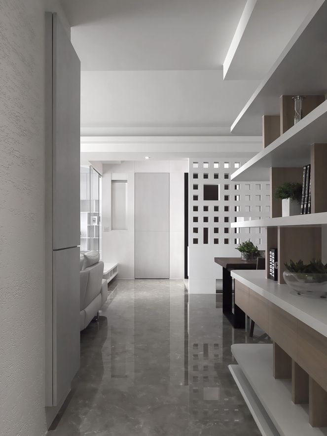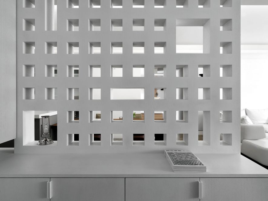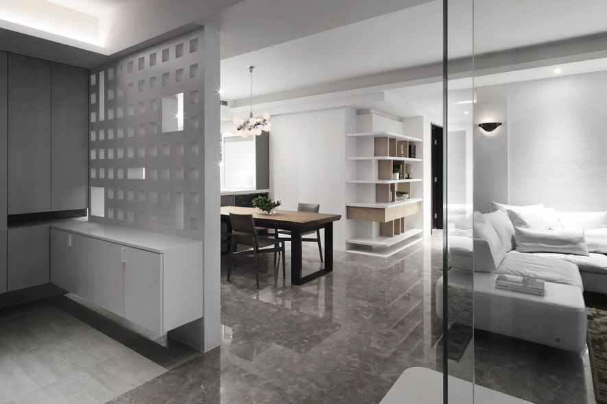 玄關以錯落的方格屏風成為與餐廳之間的介面