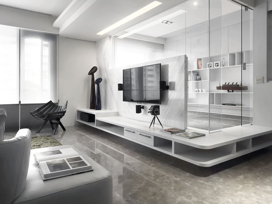 降低的銀狐石電視主牆搭配純淨的玻璃