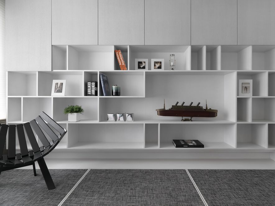 低矮的電視懸浮空格輕盈了整個書房地板收納的厚實感