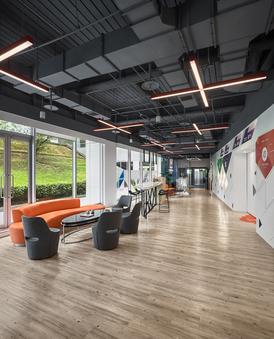 PVC木地板、黑鐵烤漆造形燈、烤漆玻璃、清玻璃、特殊漆