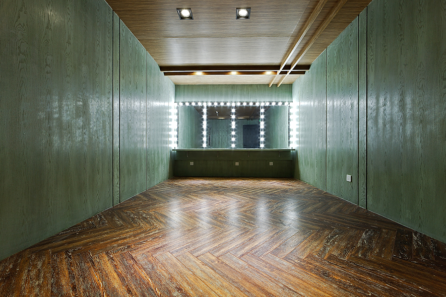 公共空間-化妝間,翡翠般綠色的牆呼應到了最初的自己,如毛毛蟲蛻變成蝴蝶,等待最美的時刻綻放。