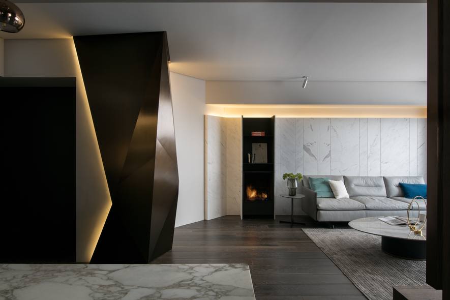 空間何以能熨貼人心?不僅是型的雕琢、情韻的經營、工藝細節的講究,更在於一切有形無形的契合。由舊屋改造的此案,實際室內面積約34坪,且因原格局已然不符需求,格綸設計團隊全數拆除舊裝潢與隔間後,重作平面檢討與動線配置,促成空間脫胎換骨的第一步。