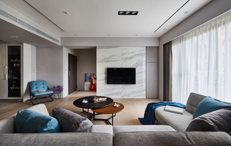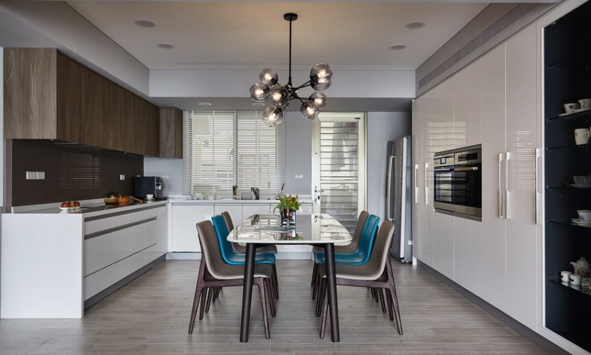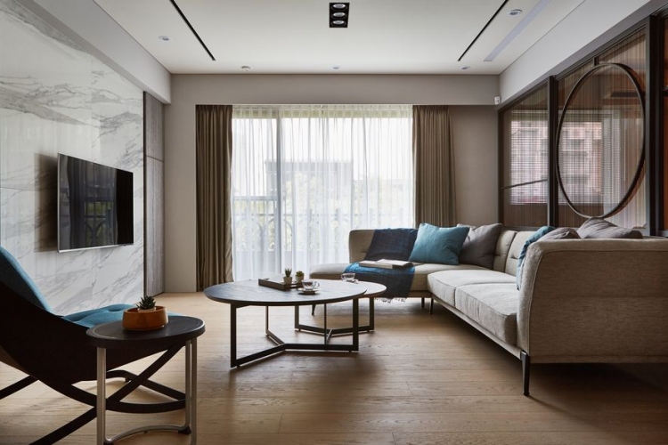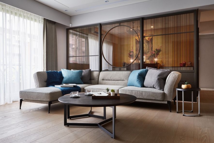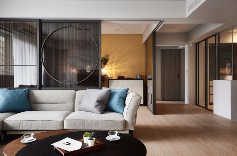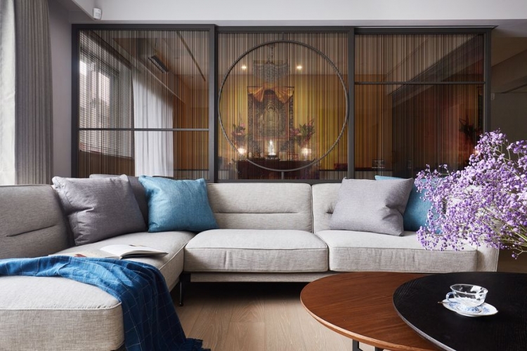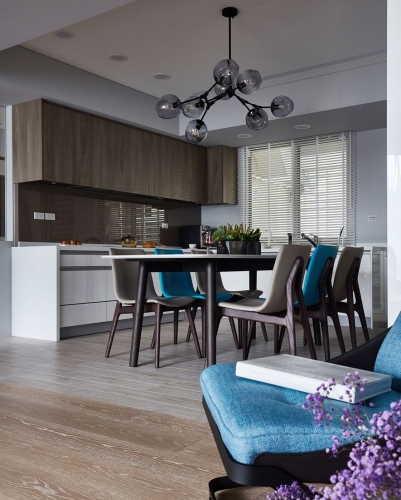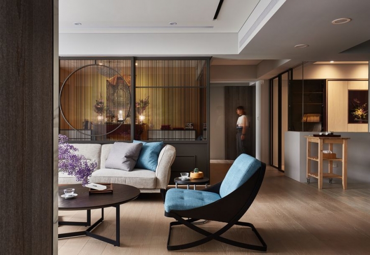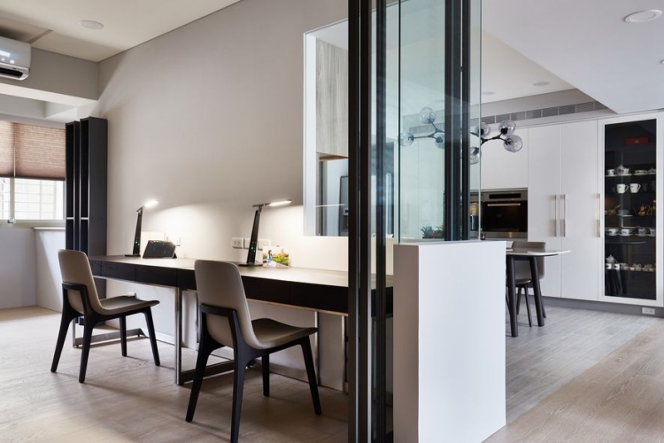 業主期望住家能搖身變為,文學研習同好一同共學會所。將空間作為開放式大空間,佛堂及餐廳也能隨時納入客廳尺規。開放式廚房作為共學最佳凝聚研習區域;研習書量極多的屋主,要求書櫃區分深淺總類,使其取閱便利,一目了然。