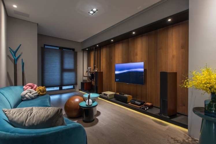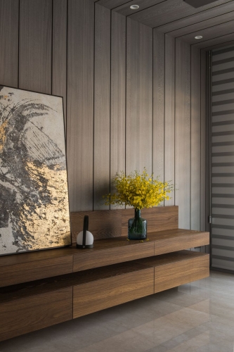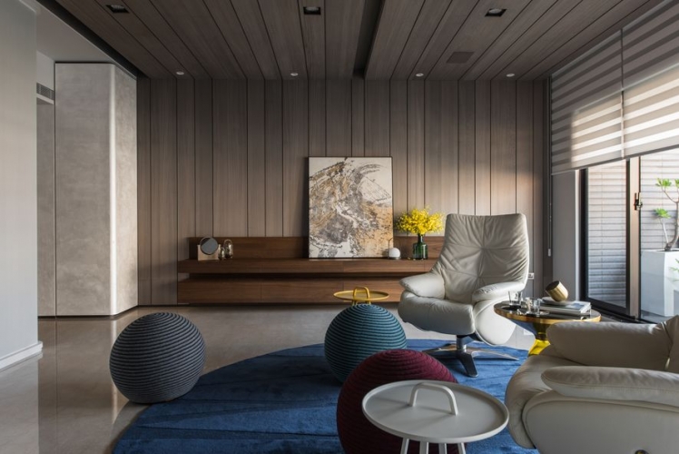 客廳木皮大折板:化整為零 讓空間的整體性穩重且大氣