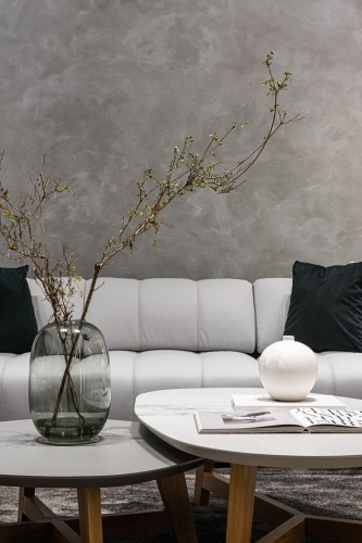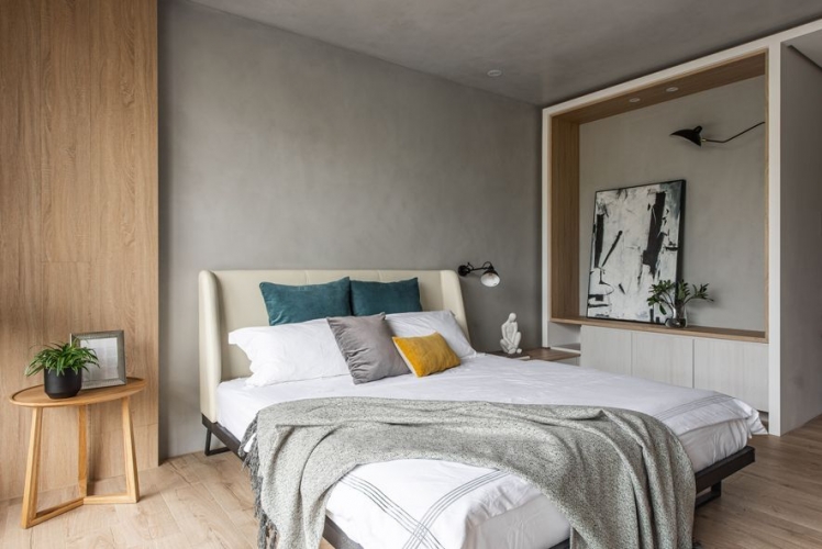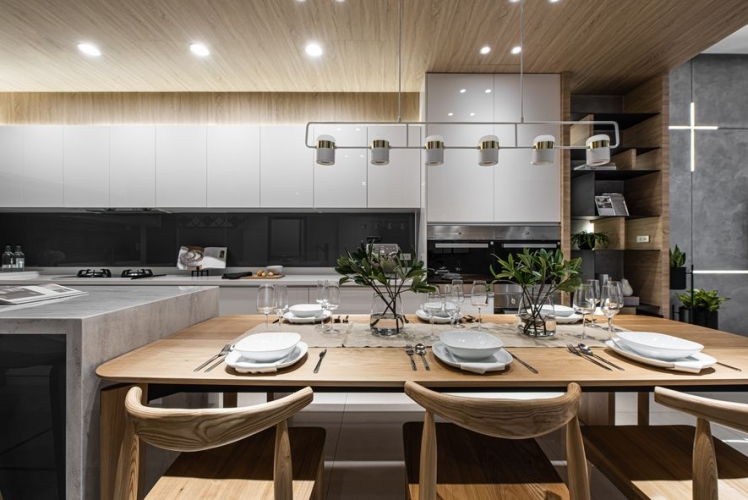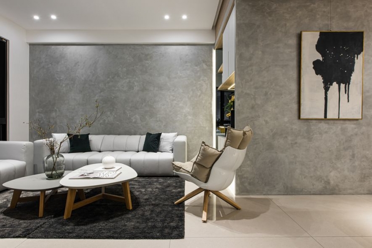 格局方面設計師進行全面改造,以全開放式的設計,形成客廳、餐廳、廚房中島吧台三者的連貫性,達到屋主希望的寬敞感覺;並採用義大利進口的特殊漆取代一般薄板磚或大理石,打造絕無僅有的質感牆面,以手工細膩的手法,為你的家漆上獨一無二的美。