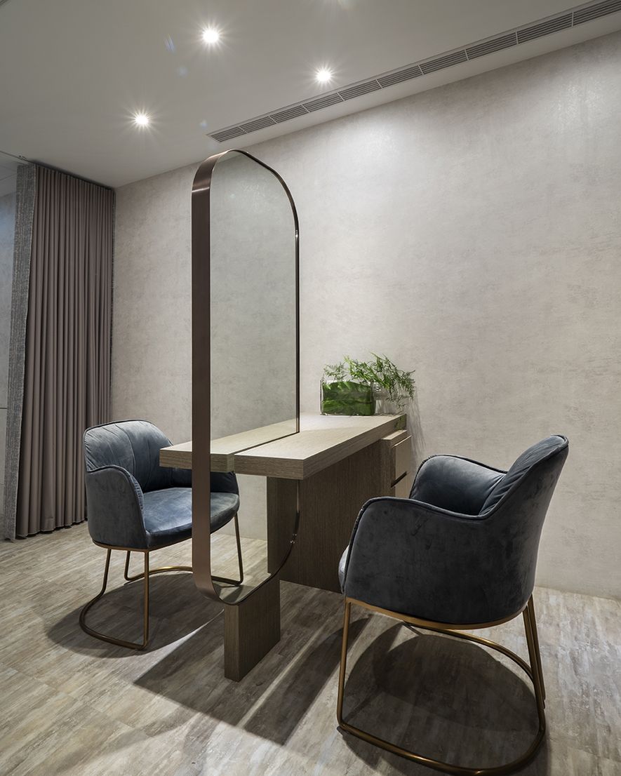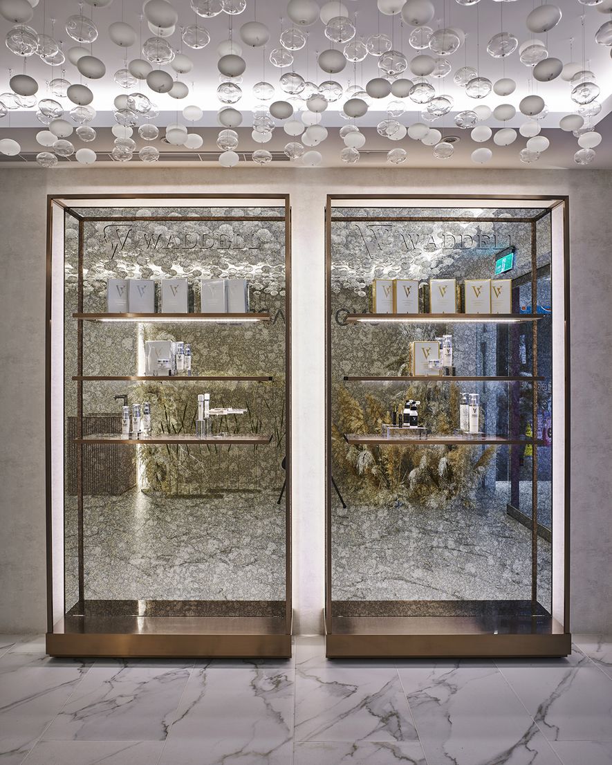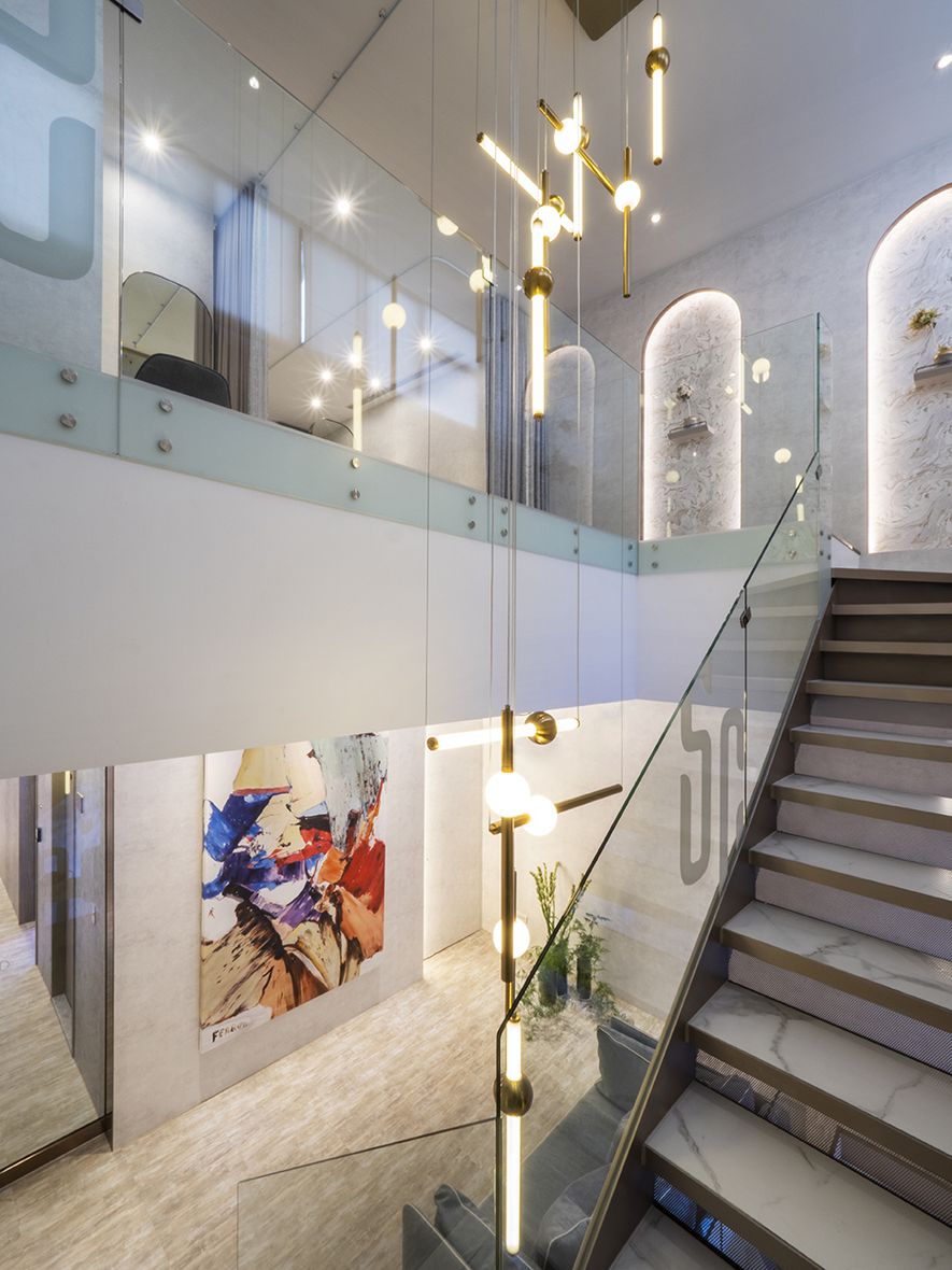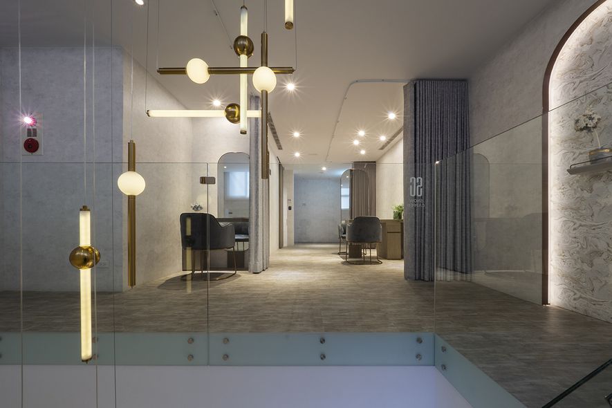 SNOW CAPPED 科技美容旗艦館,座落於台北市西區精華地帶。三層樓老建築, 在經過建築結構及基礎工程加強並重建、及外觀重新拉皮整理後,前後費時約莫一年的時間中,設計團隊用理性思路籌理建築外觀與室內設計,從簡單、俐落的線條秩序對比光影脈絡強化層次間的虛實關係,在翻新規劃的解構概念裡,續引流行時尚,預留美好願景。