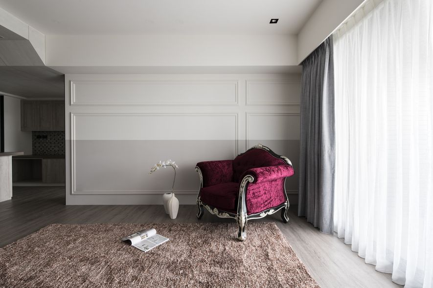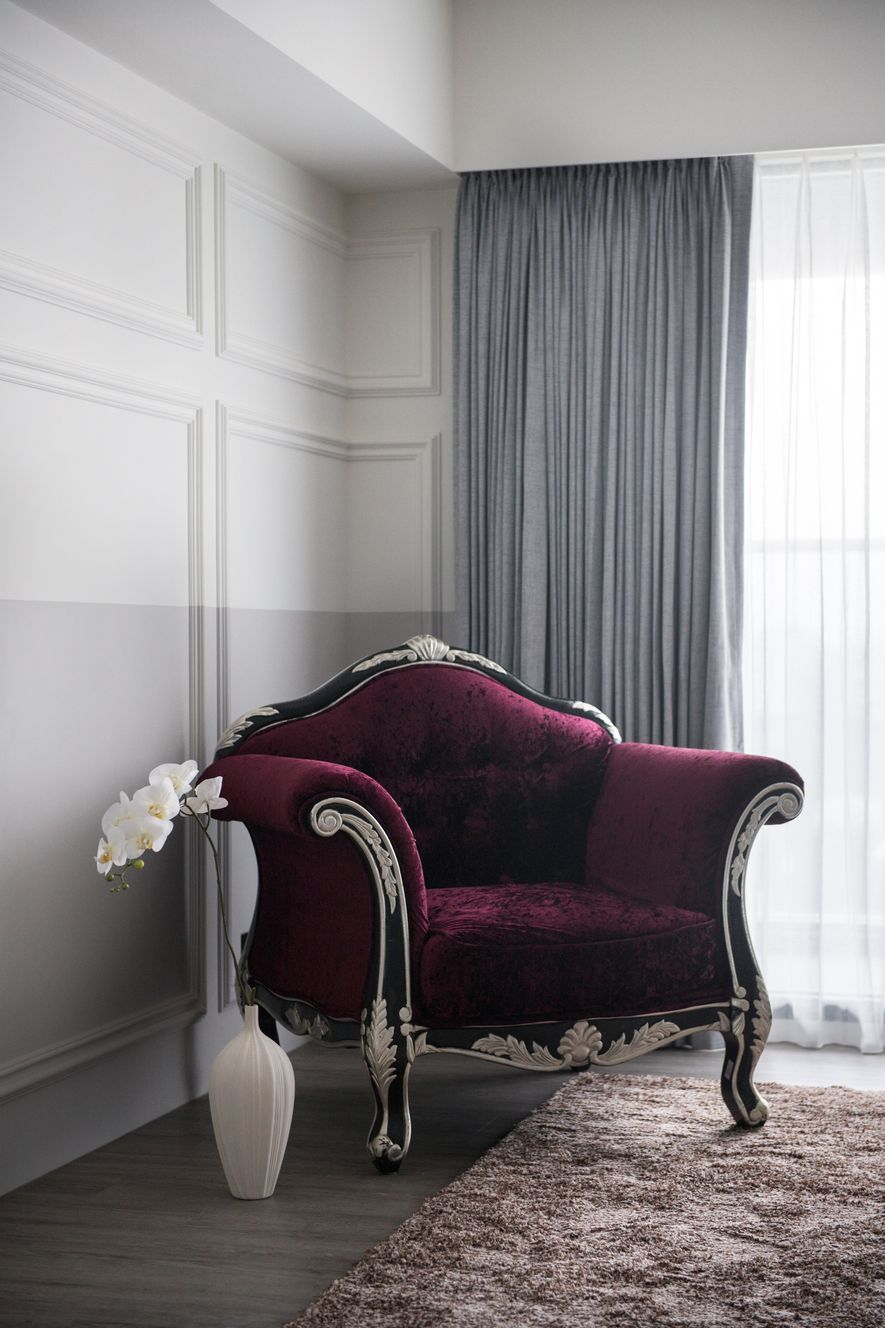 溫潤的空間採用紫色單椅以及蝴蝶提升高貴感