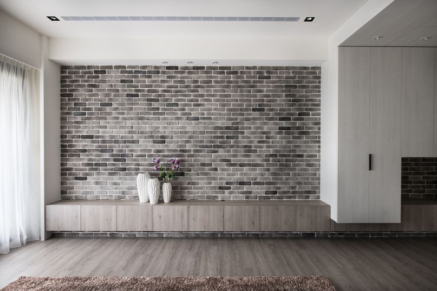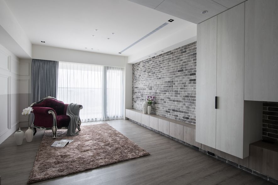 粗曠的灰階文化石,與溫和的米色空間產生張力呼應