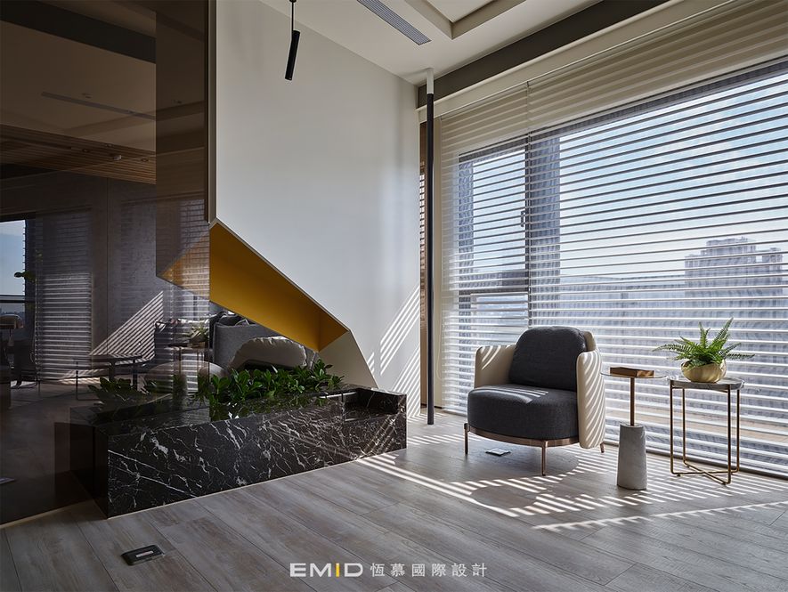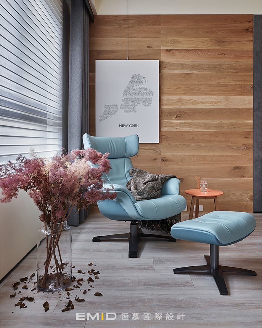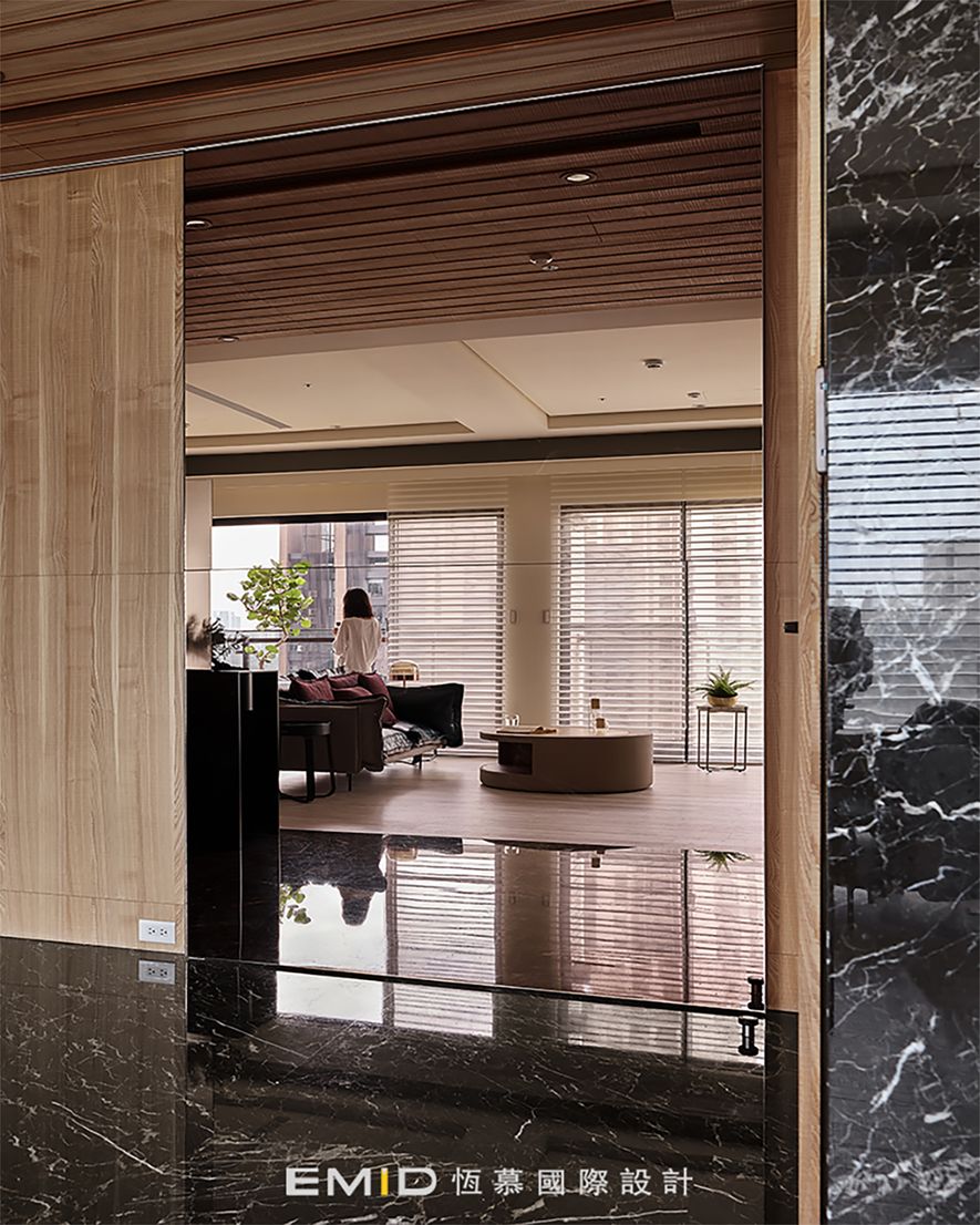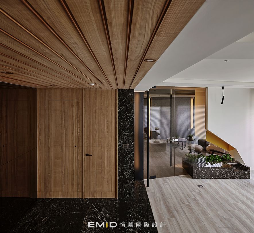 主要建材/ 木皮-天然栓木、石材-艋舺及銀狐、實木格柵-寮國香杉、實木皮地板-北美橡木、特殊漆
