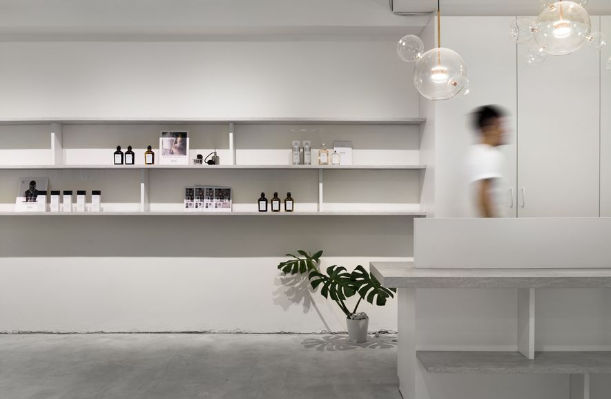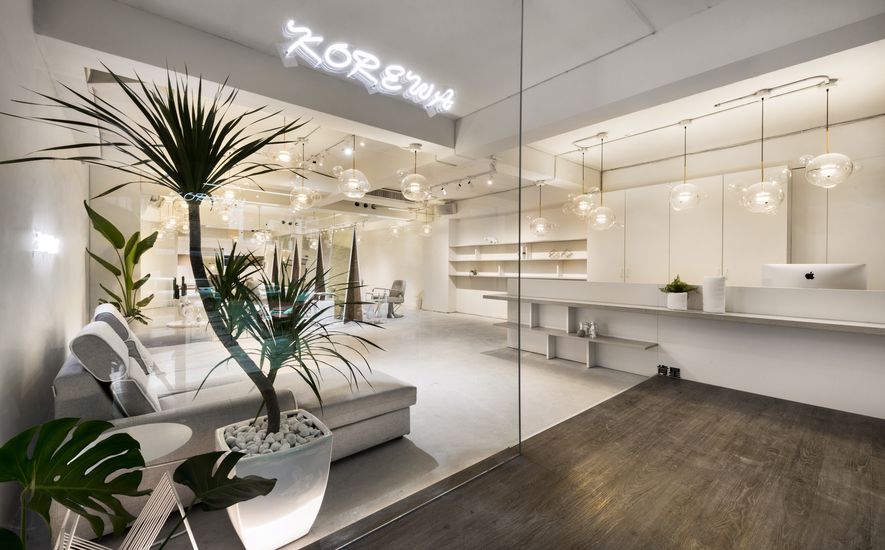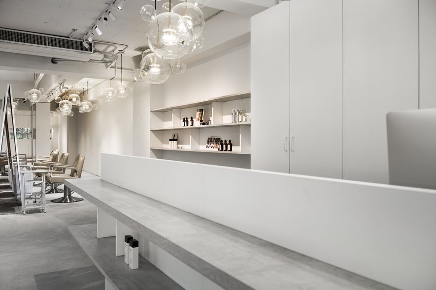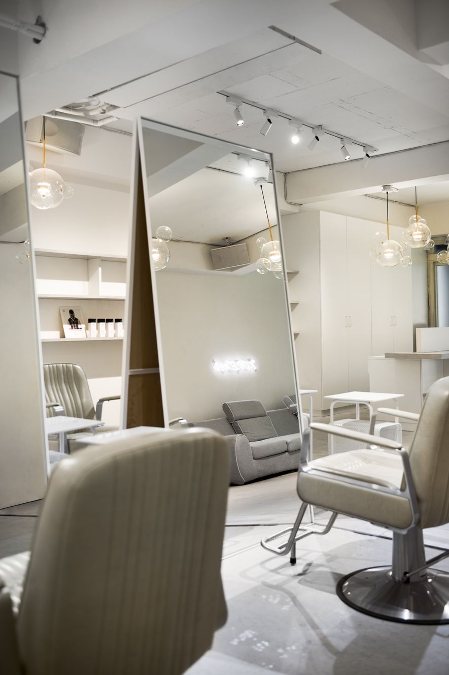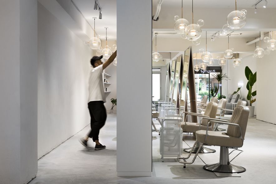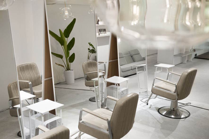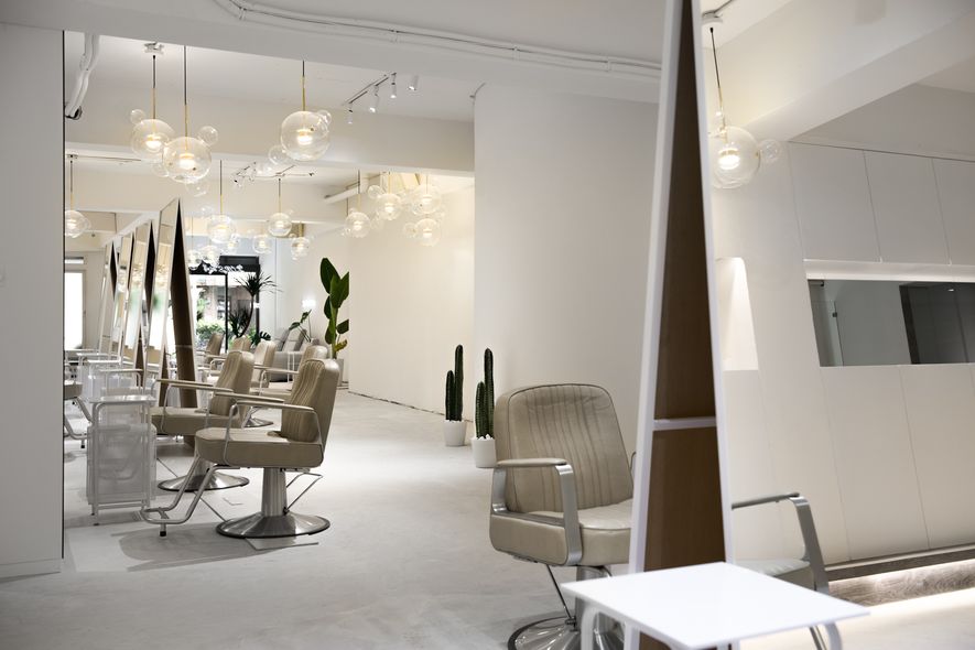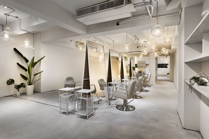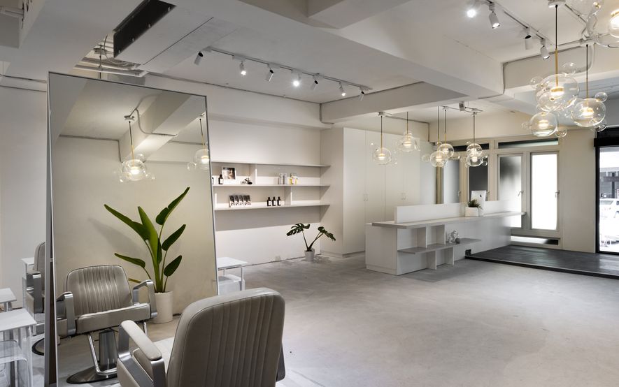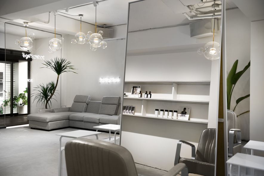 玄關、剪髮區、櫃檯區、男士油頭區、沖洗區