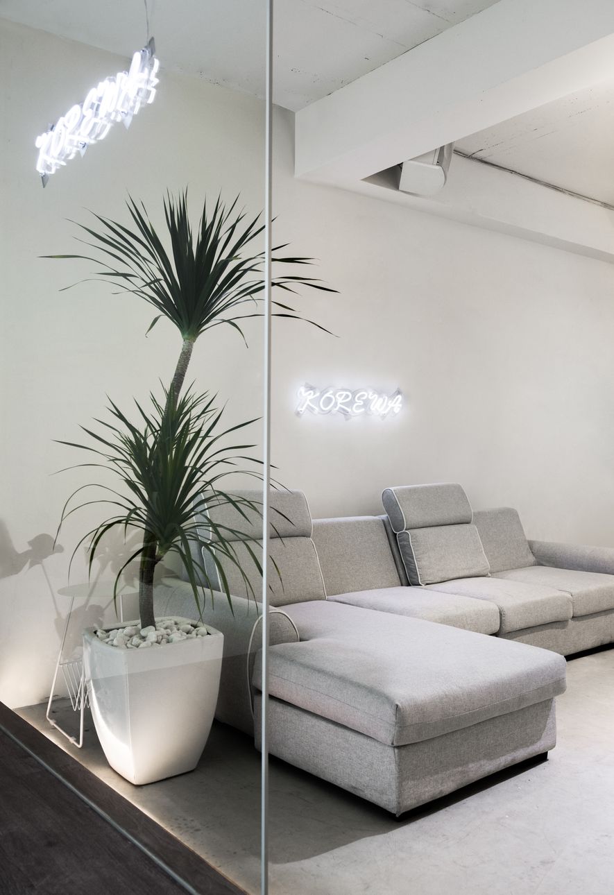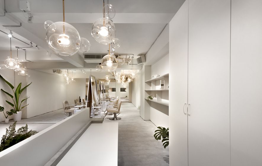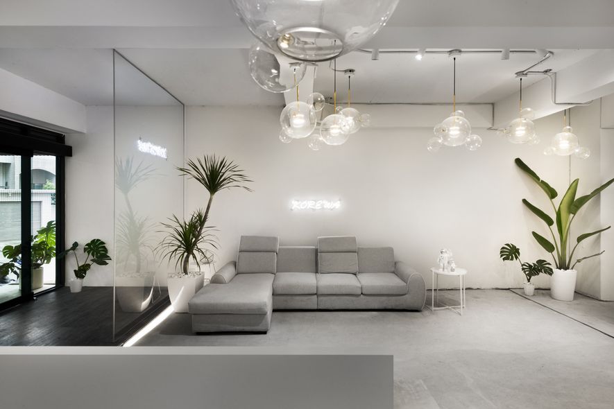 泡泡燈、系統櫃、水泥抹平地、玻璃