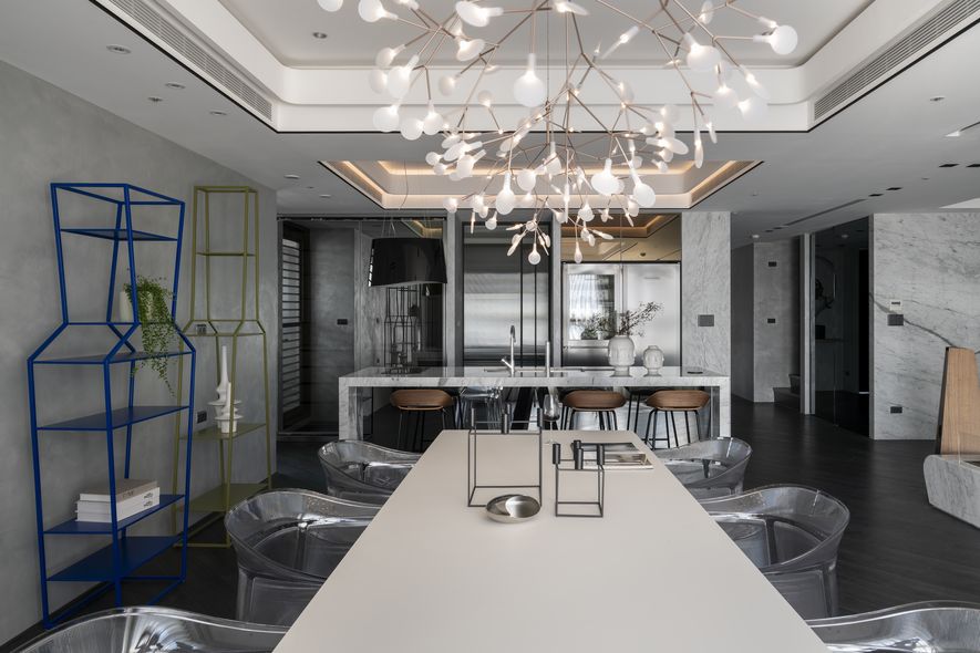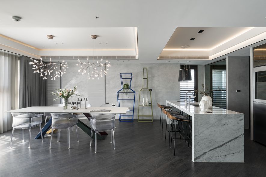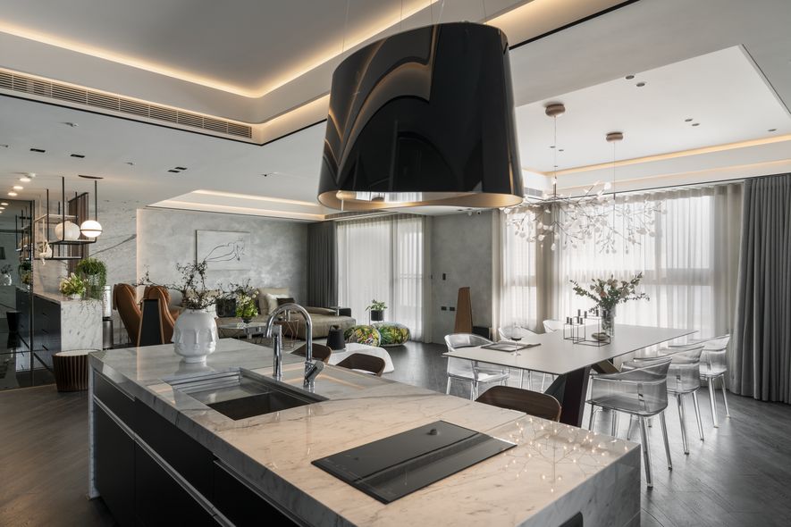 知悉屋主的精湛廚藝,設計師特別做了內外廚的設計,當內廚烹調油煙較重的佳餚時,外廚依然能保持乾淨優雅,無論是早晨的一杯咖啡,抑或是夜晚的小酌,都能在此享受愜意氛圍,不必擔心受油煙困擾。