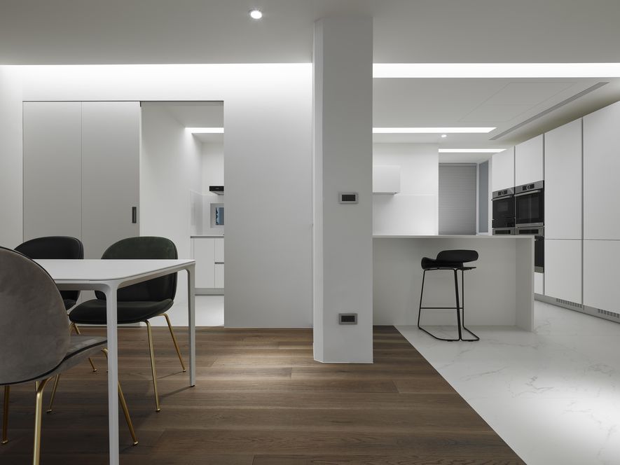 從形體到光線,從動線機能到環境景觀,日常晨暮間,任由光氛演繹高低層疊的悠閒景況,不再以陳設外物堆砌顯貴,和時景依偎與共,暢然寄懷。