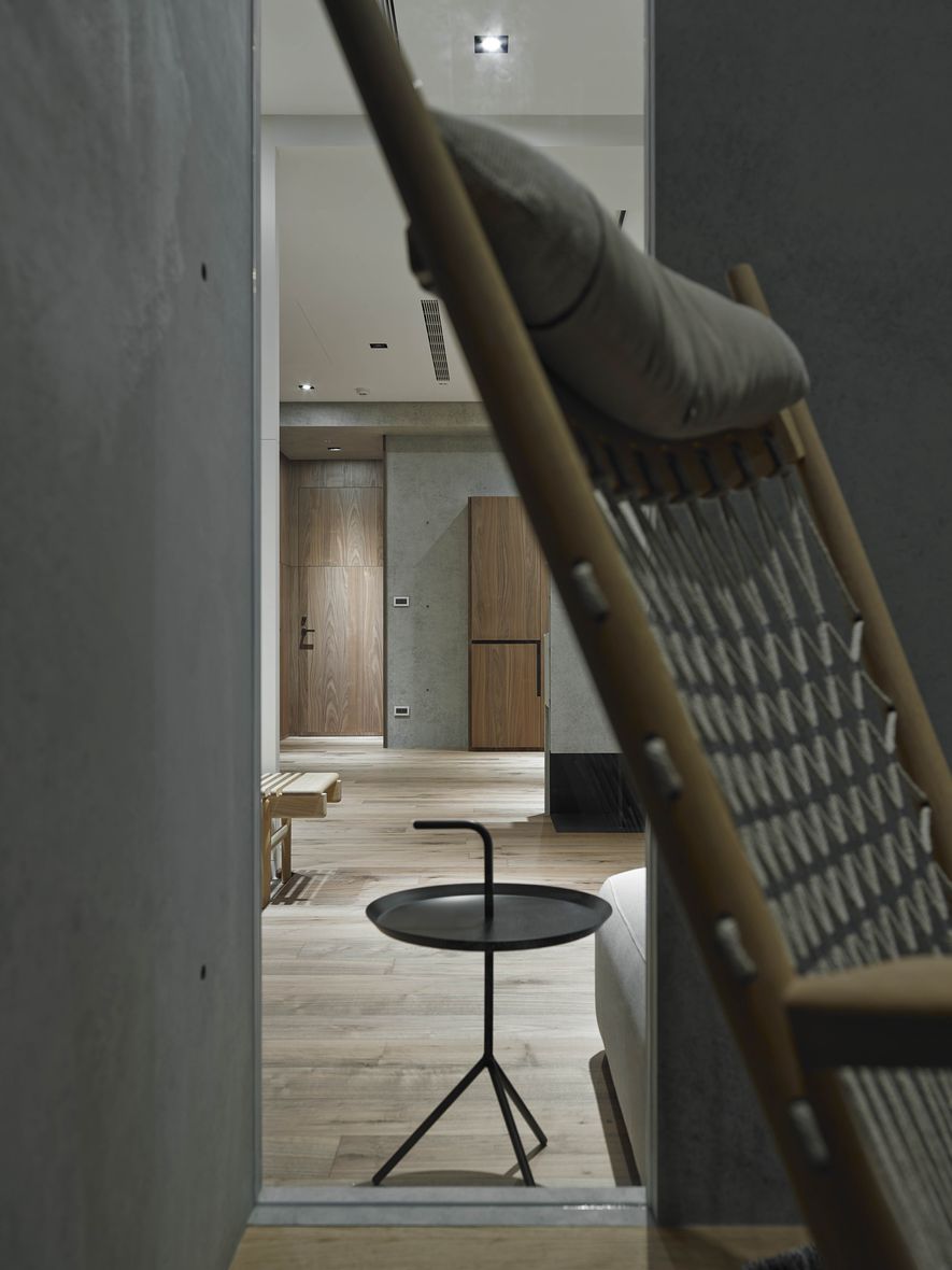摒除裝飾性的價值,讓空間事物直接對話,強調:「設計,是場域輕鬆無壓的態度,應該是自由無負擔,卻又要從空間結構中,發展出〝定〞的構築概念,私藏空間秩序。」掙脫既有的框架、形式,以「輕盈、流動、滲透」空間概念,建築結構與設計意涵互補、連絡、銜接、衍生出生活的整體關係。