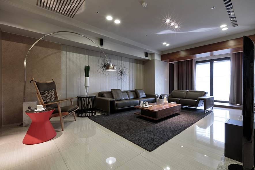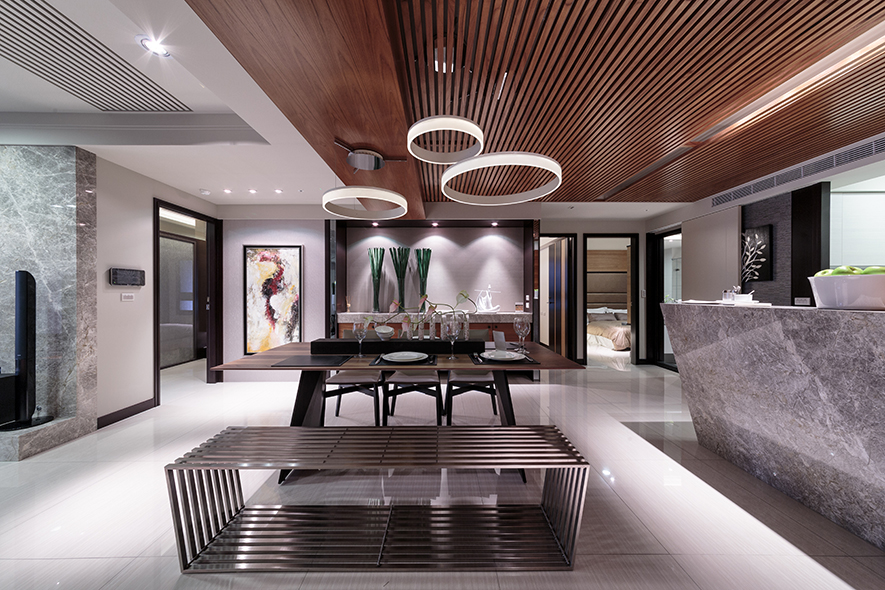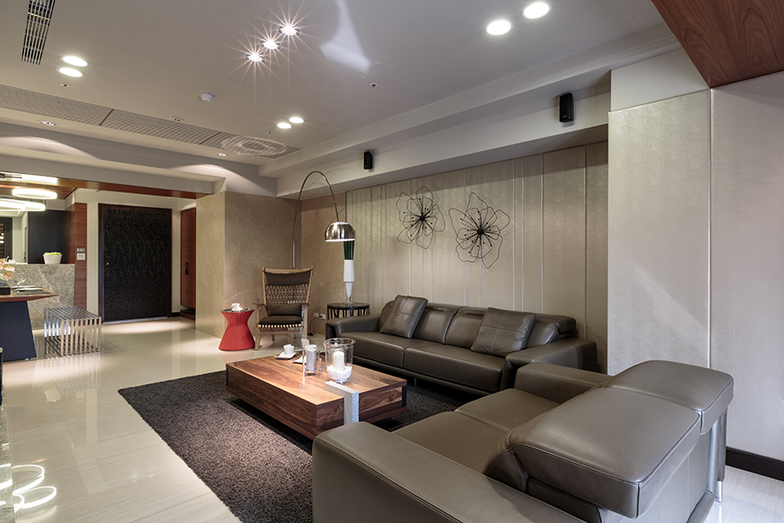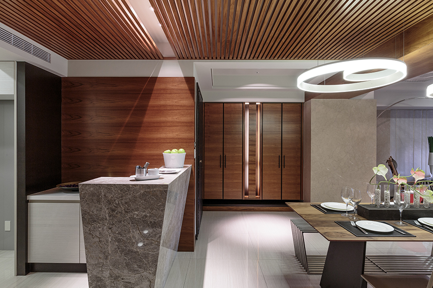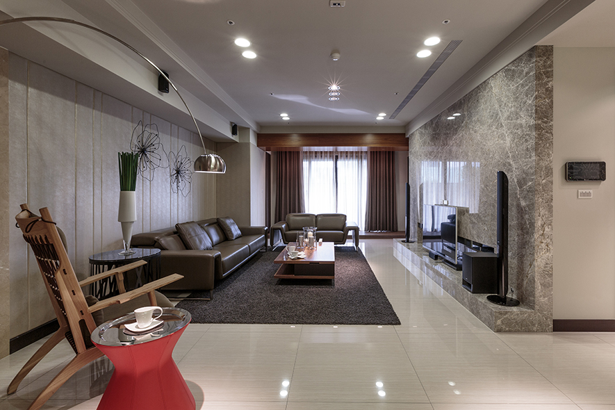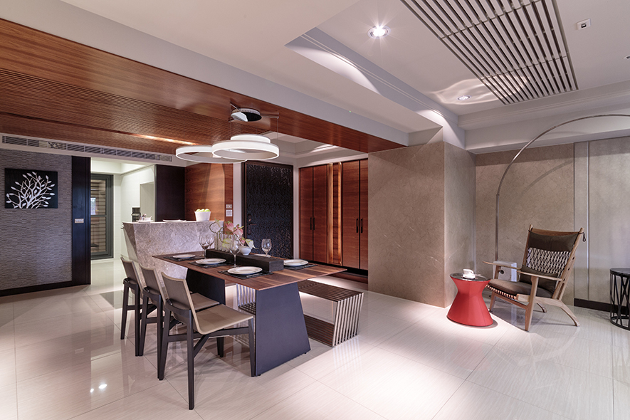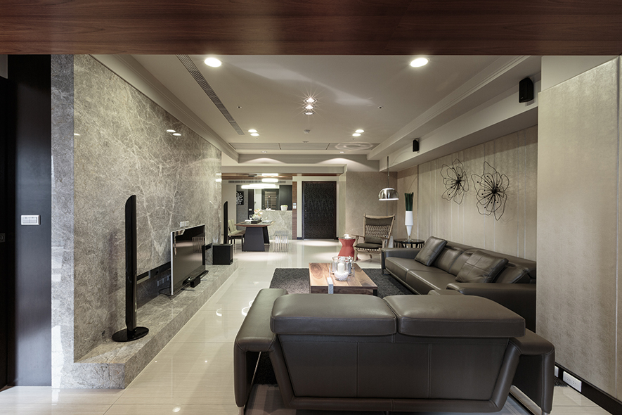 該項目為一處座落於南台灣都市的住宅實品屋,該戶型位於三樓,團隊於建案前銷期即入場設計,因此對於格局設定、風格定調都擁有相當大的自由度,而我們在考量坪數、樓層位置後,將此間的銷售對象,瞄準家庭組成簡單的四人核心家庭。另外,由於建設業者同為建築師,因此對於線條、樣式等設計元素皆有一套看法,因此建物規劃之初,便採用多稜角,且線條感強烈的立體造型設計外觀,所以我們一方面順應外在表現,同時為呈現出簡潔的生活場景,因此選用大量直線條變化,創造時尚與實用兼具的內部空間,期望由外而內,從建築、空間到達心靈,將未來生活的舒適和諧,盡皆帶到居住者眼前。