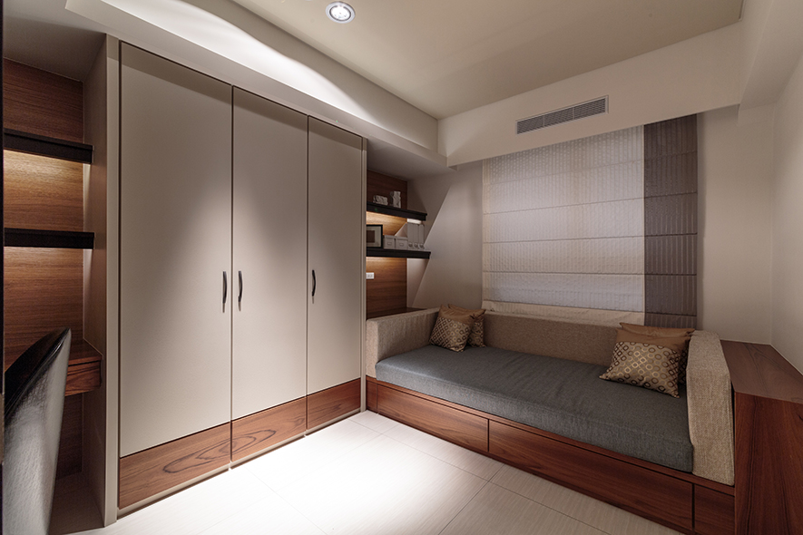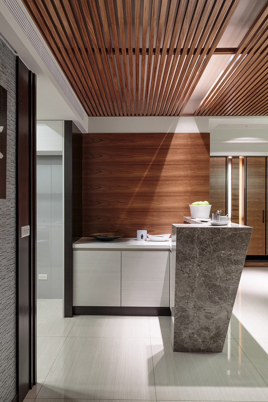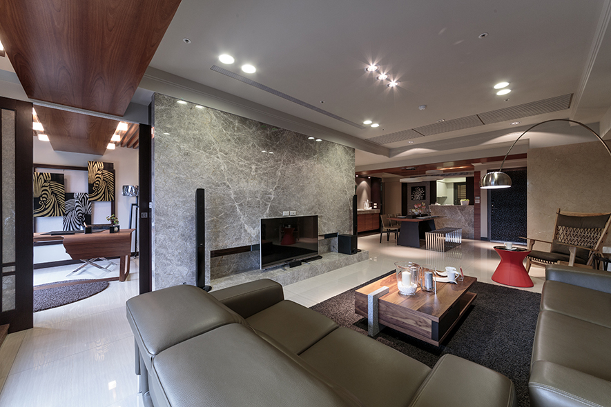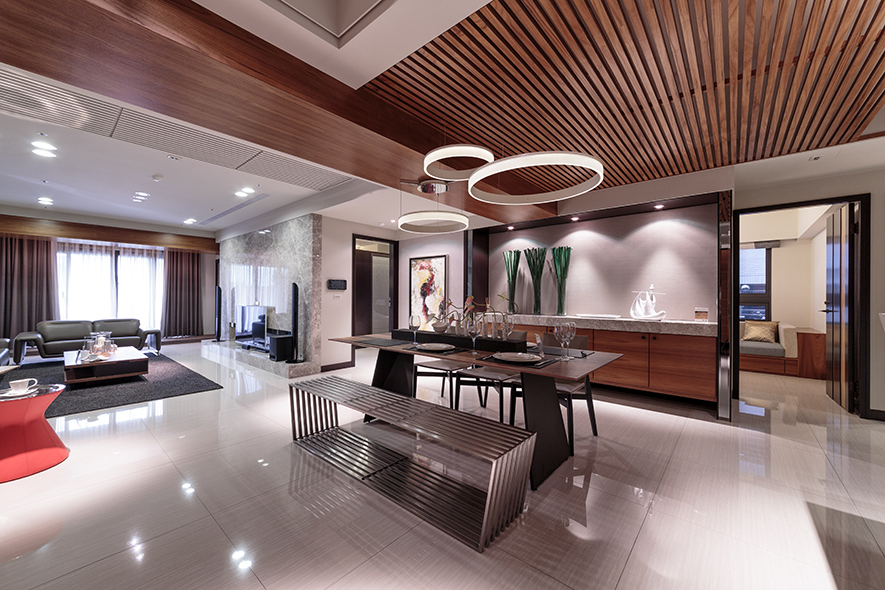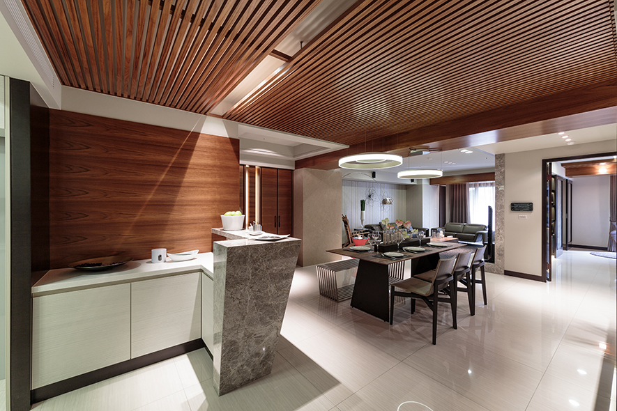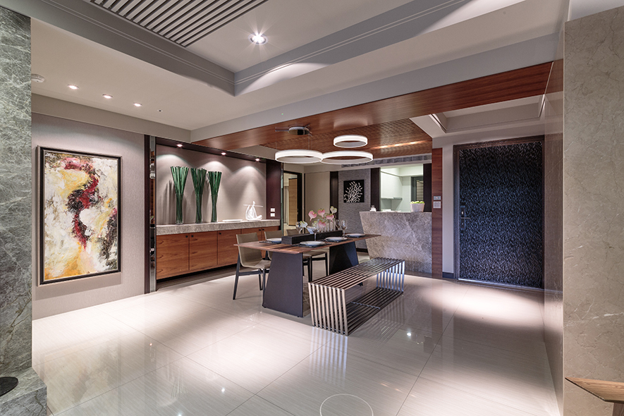 該項目為一處座落於南台灣都市的住宅實品屋,該戶型位於三樓,團隊於建案前銷期即入場設計,因此對於格局設定、風格定調都擁有相當大的自由度,而我們在考量坪數、樓層位置後,將此間的銷售對象,瞄準家庭組成簡單的四人核心家庭。另外,由於建設業者同為建築師,因此對於線條、樣式等設計元素皆有一套看法,因此建物規劃之初,便採用多稜角,且線條感強烈的立體造型設計外觀,所以我們一方面順應外在表現,同時為呈現出簡潔的生活場景,因此選用大量直線條變化,創造時尚與實用兼具的內部空間,期望由外而內,從建築、空間到達心靈,將未來生活的舒適和諧,盡皆帶到居住者眼前。