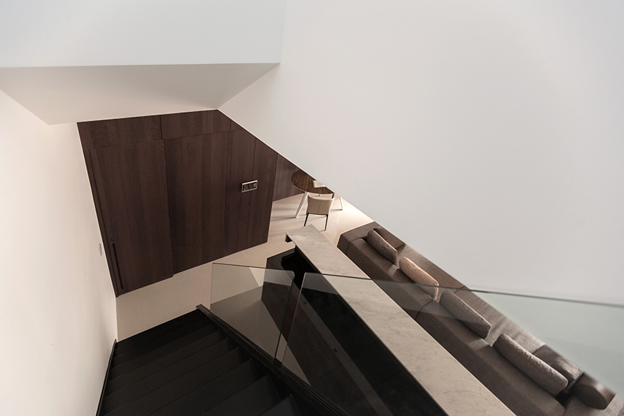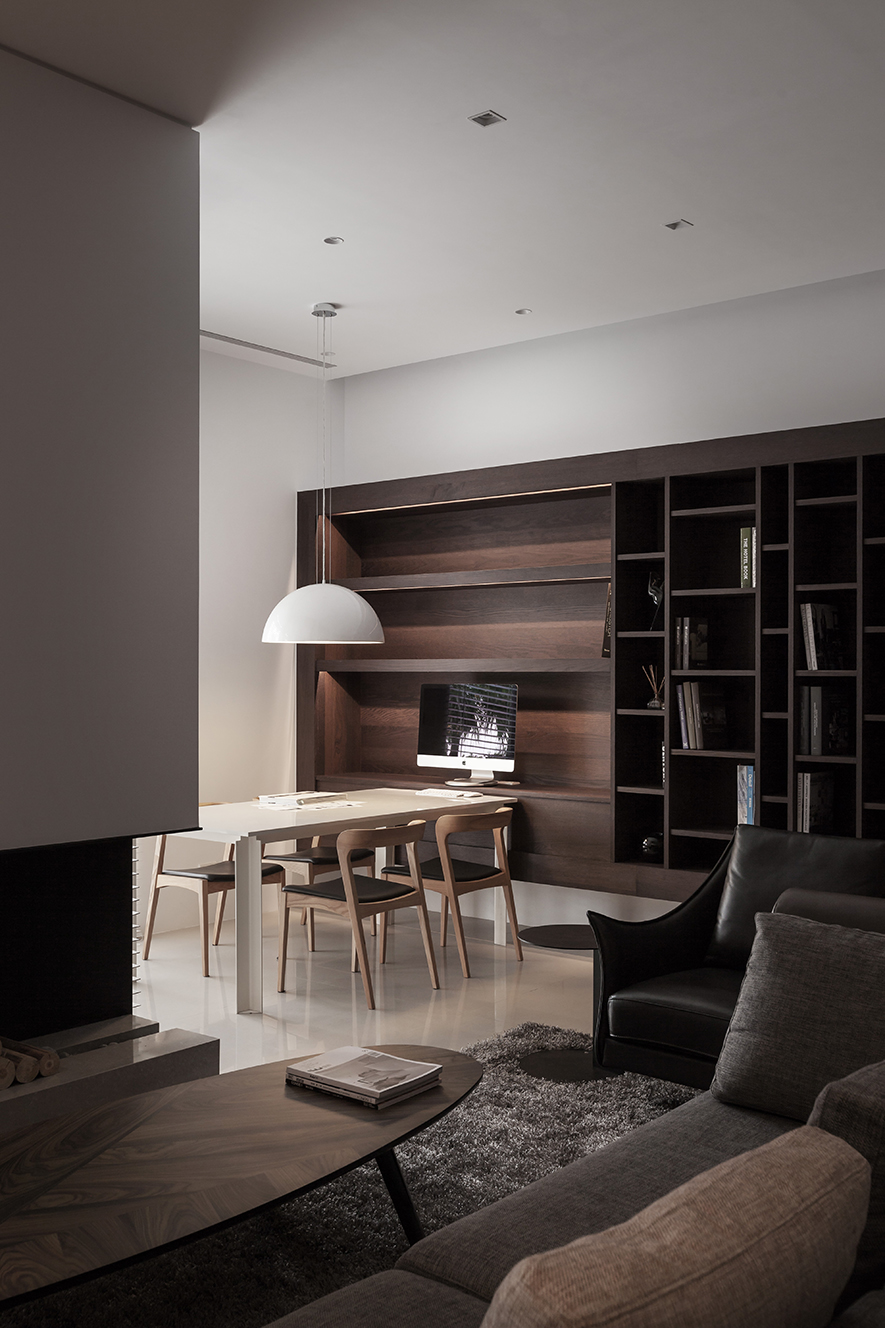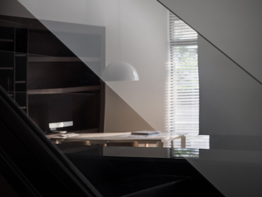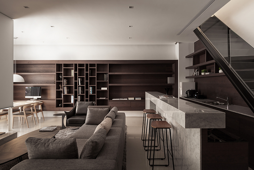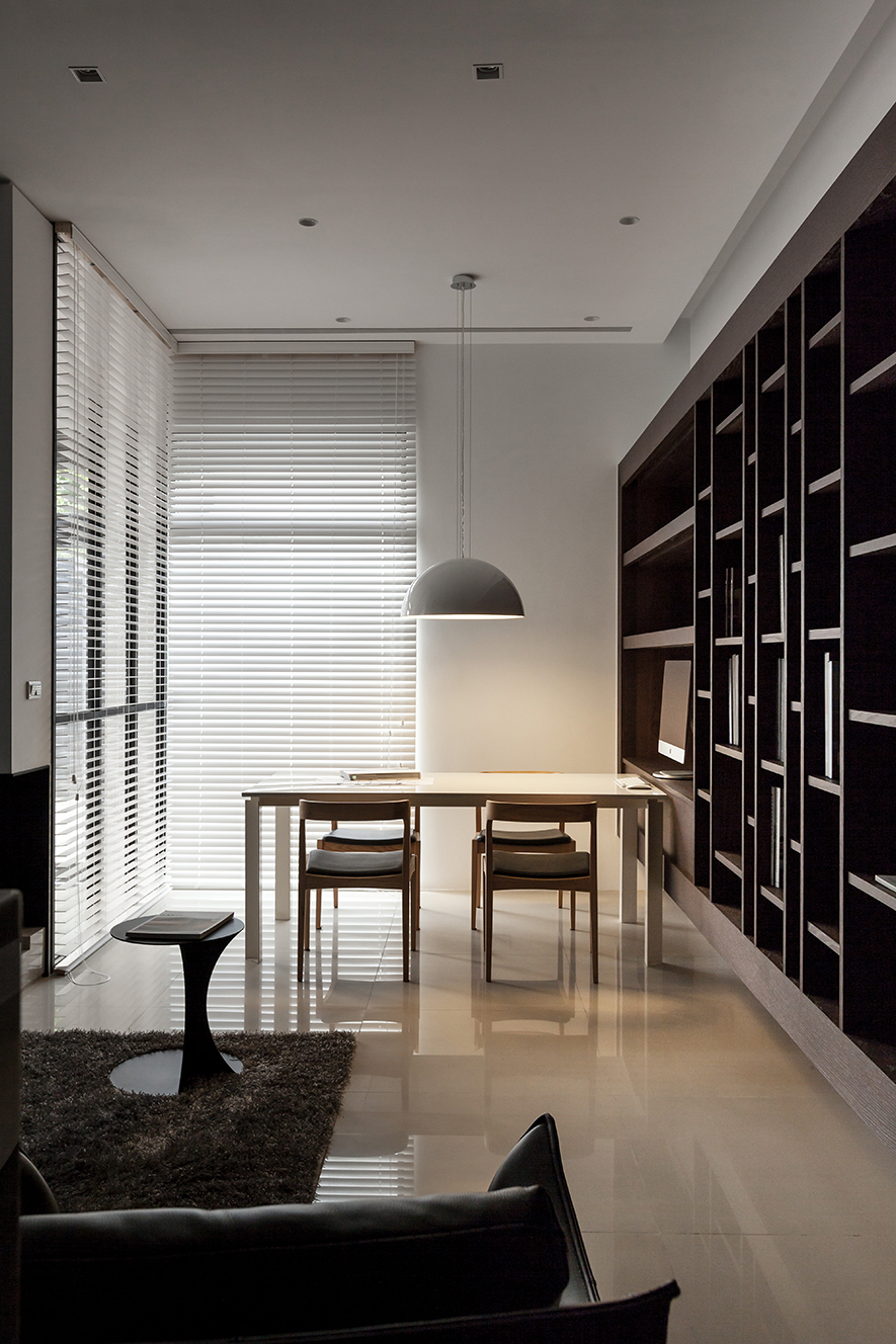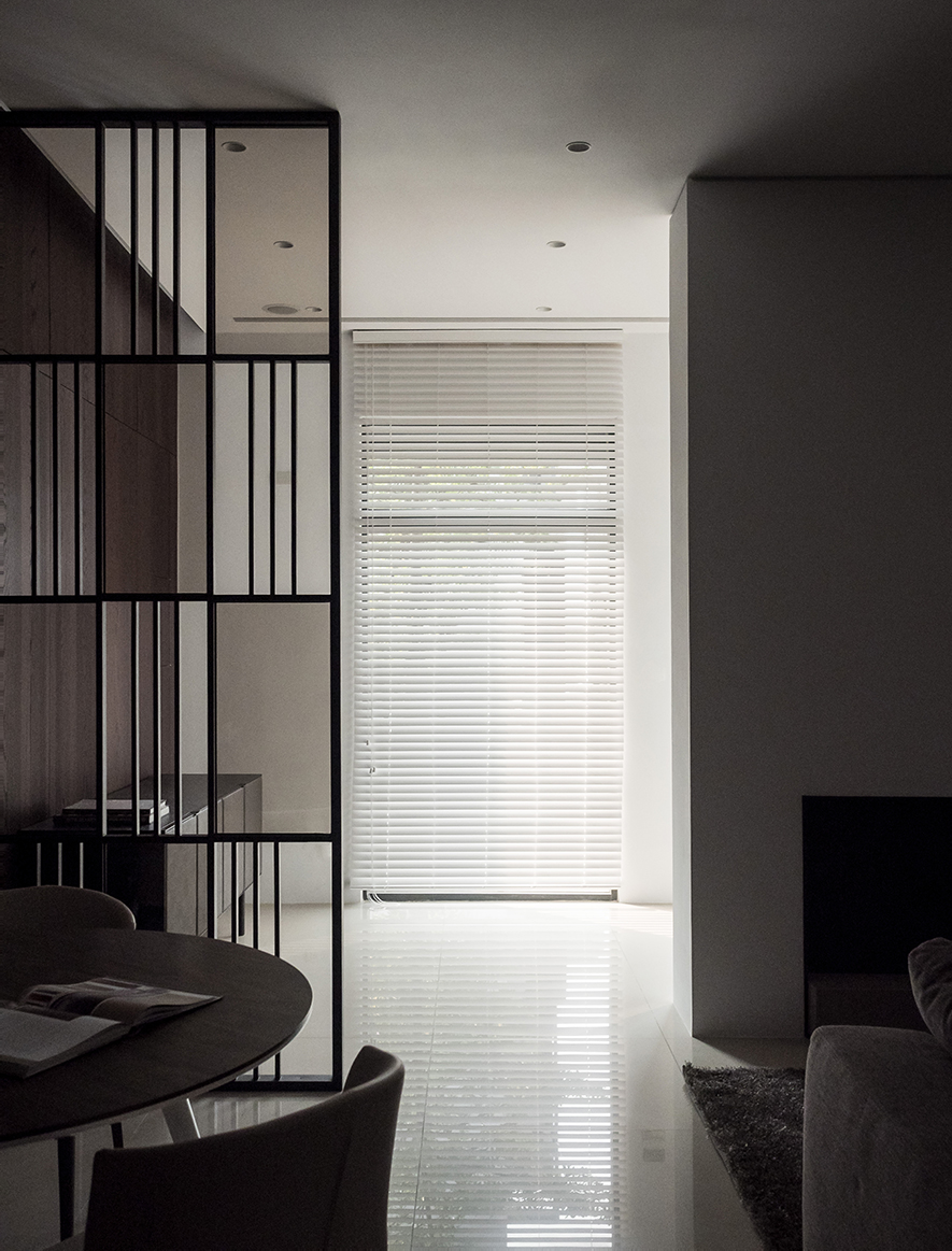 木色與白色,勾勒出人們對自然的嚮往;灰色與黑色,點綴出清新質樸,撫心沉靜、帶來安定的力量;運用大片落地窗及百葉窗一掃灰暗,四處皆能找到屬於該空間的一隅光!以木櫺式的落地窗隔出穿廊空間,以玻璃替代樓梯的扶手,讓視野不受拘束,光線更自由,巧妙突顯出空間的立體與開闊。