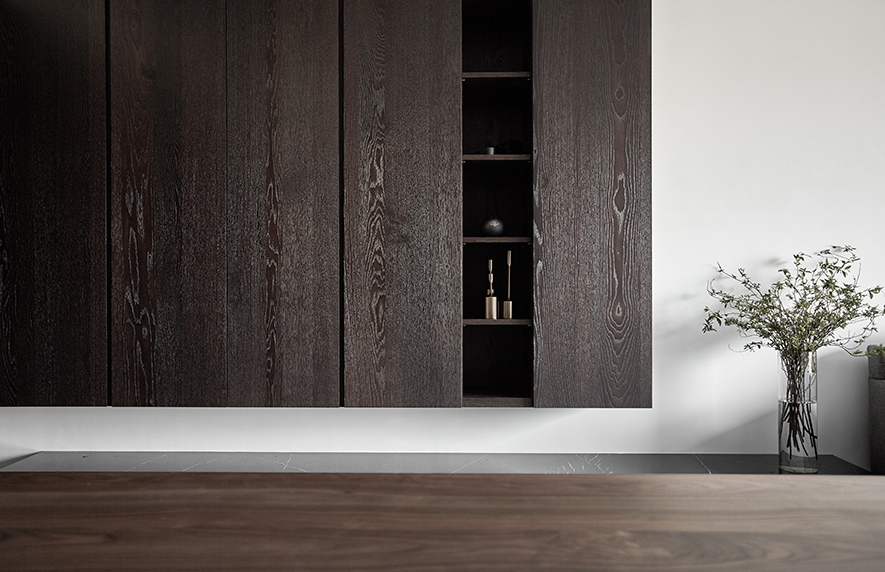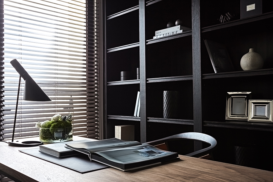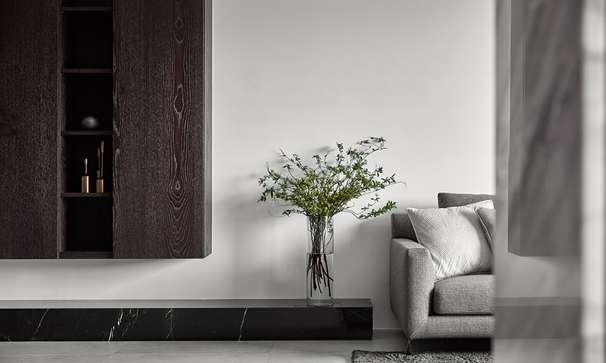 以和諧雅逸的飯店式設計概念為出發點,與愛好藝品收藏、充滿文藝氣質的居住者夫婦完美搭配,悉心打造舒適與品味兼具的住宅。透過天然石材與大面積木皮,營造沉穩無華、大器優雅的空間底蘊;精選溫潤的原木質感軟件,創造出質樸溫暖的層次;簡潔的垂直與平行線條,讓每個珍藏的逸品都能在其交錯的空間中呈現出細膩感與獨特性。