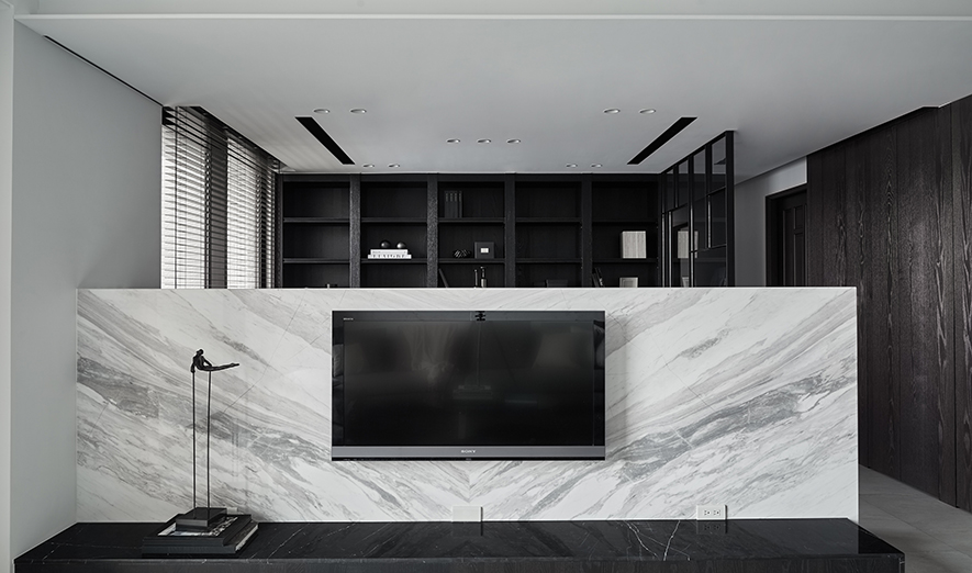 高雅穩重的大理石主牆引入現代感,與義大利經典沙發相互輝映,宛如一幅流動的抽象畫,藝品般的設計師燈具,更添空間的經典氣質;客廳、書房與房間大面積的獨有窗景,充份引入自然光;傢具及材質的選用以和諧交融的方式,重新詮釋現代定義,仔細著重每個設計細節,讓生活場域表現得更當代、時尚且具獨特個性,充分呈現出一種時尚藝術的生活氛圍,讓一家人在繁忙的生活中,也能悠然地沉澱,享受近在咫尺的居家美學。