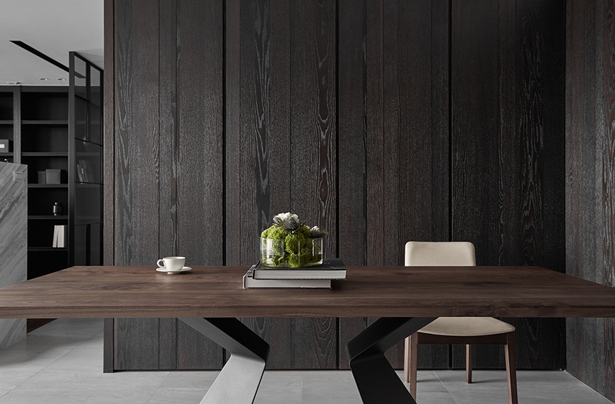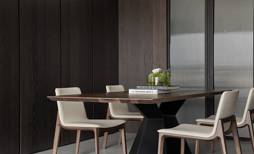 安穩自在的開放式公共空間設計,讓人一踏入家門,隨即能感受到廣闊的空間氛圍,不禁自然悠遊於客廳、書房及餐桌之間,讓一家人的生活更加緊密,展現出嚮往居住的悠然韻味!