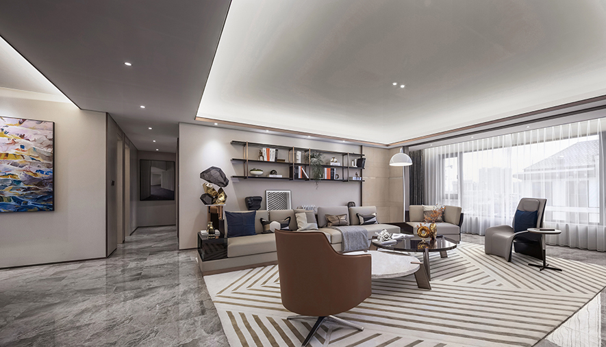 設計團隊將藝術精神,引申至設計主軸,貫穿全場,替成功企業家的屋主夫妻落實理想生活,建構線面間的奢華質感與細膩大器,在中性色調下,適當的留白與極少的裝飾讓整個空間飽和而澄淨,四方體現光影、材質、顏色賦予的真實價值。