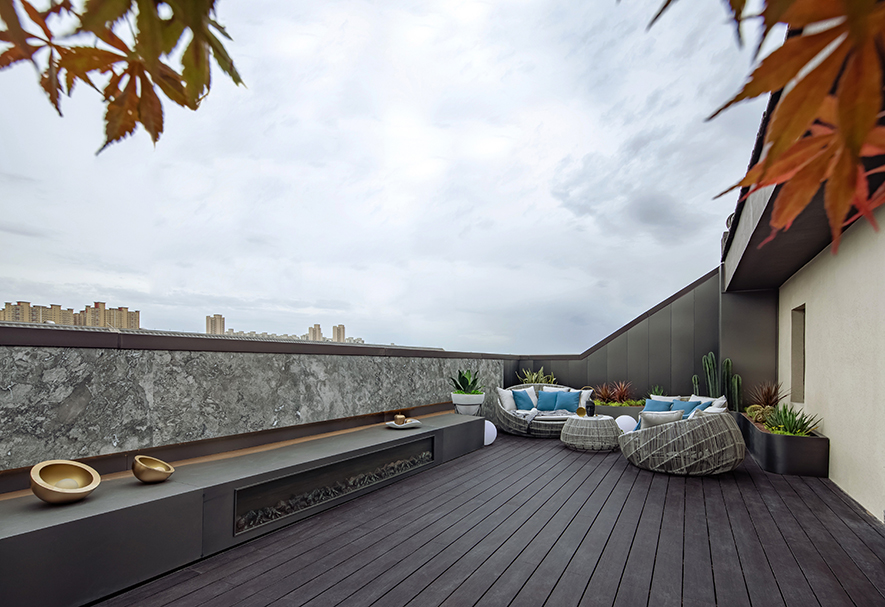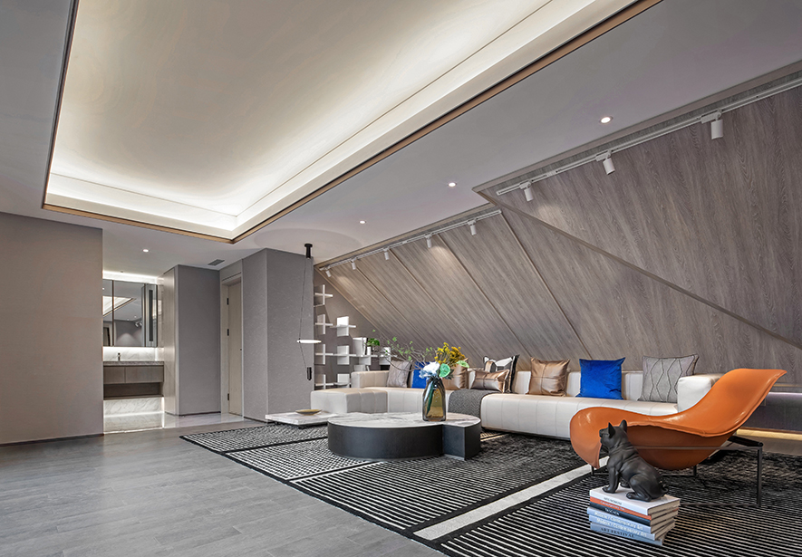 個案本身位處建築頂樓、以上下樓層規劃,男女主人皆為企業成功人士,希冀未來宅邸格局具低調奢華底蘊也富人文溫度。設計以單純的介面形成律動牽繫著每個立面的延展,解釋了這個猶如微型城市的脈絡及場域公、私的互動關係,藉由動線的暢快、聲息的互通有無、光影的前後呼應、彩度深淺的漸層比例,純粹而精闢的引領出空間的自在價值。