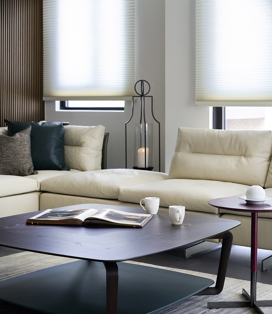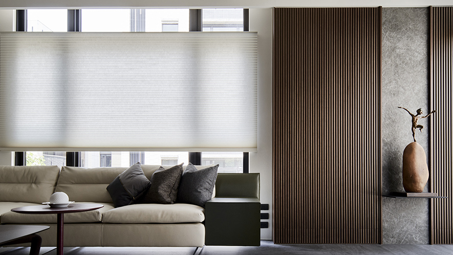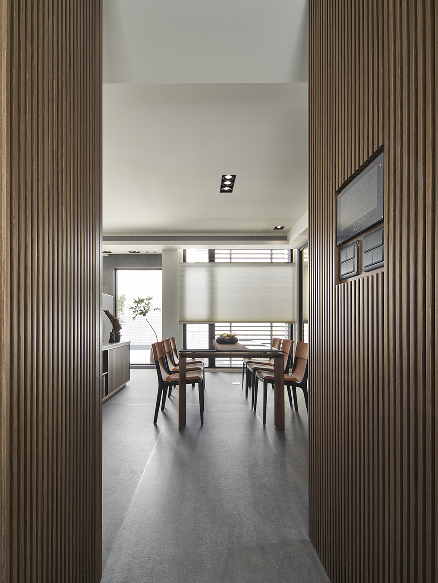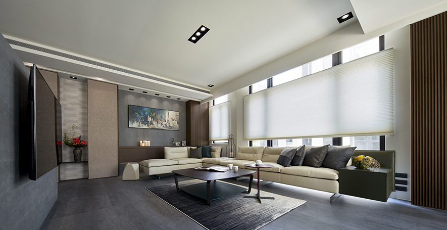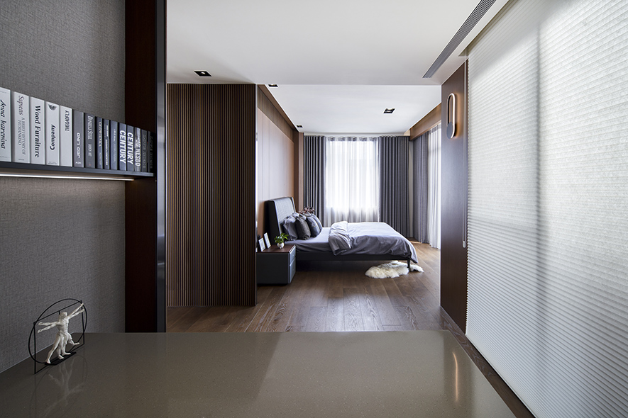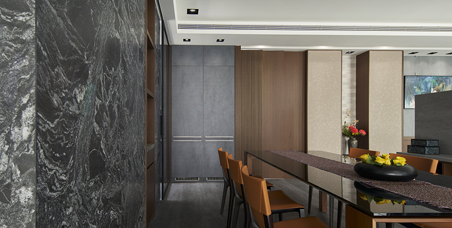 沉穩的深灰地坪,溫潤的木質紋理,在一室和暖天光的映照下,散發舒緩寧靜氛圍,襯托點綴其中畫作、雕塑與花藝,於此注入人文氣息獨有的詩意與溫度,豐富日常風景。