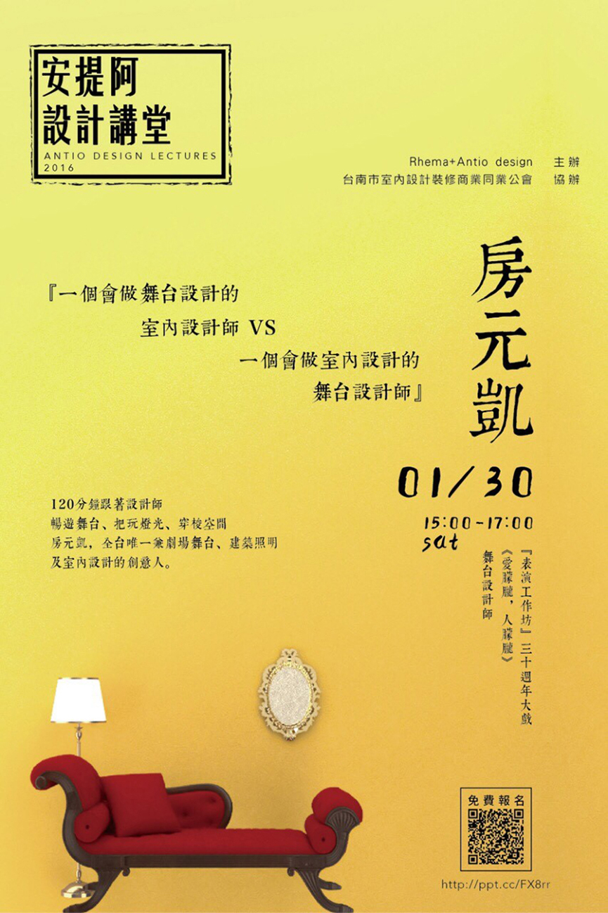 「安提阿設計講堂」自2014年起,由龔書章、張麗寶、盧錦融、周天民、范赫鑠、陳銘達、唐忠漢、劉榮祿、吳漢中、龍君兒、房元凱