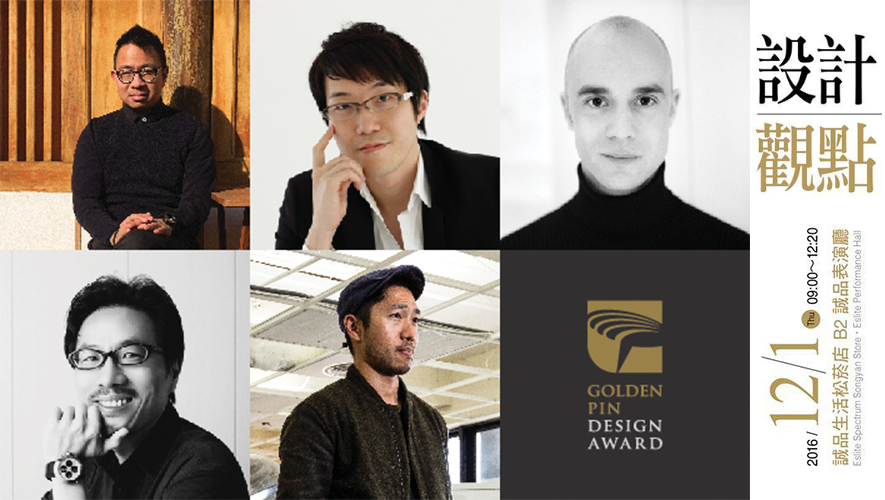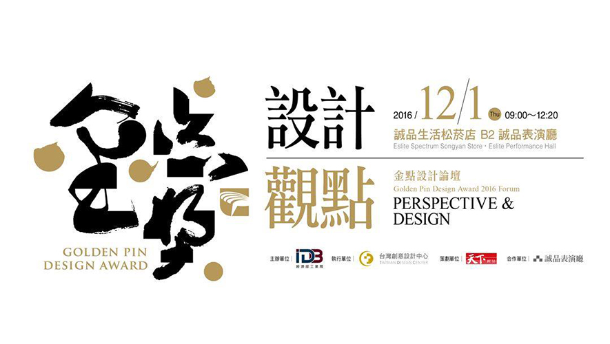 2016金點設計論壇將於12月1日上午在松菸誠品B2表演廳隆重登場,今年金點設計論壇主軸為「設計觀點」,主辦單位邀請到佐藤大(Oki Sato)、馬丁克萊森(Mårten Claesson)、毛灼然、黃謙智、陳禧冠等國內外設計大師齊聚一堂,透過他們對於文化的觀察以及獨特的觀點,激盪出不同的設計想像,並且透過座談會的對話交流,進而找出華人設計的論述。演講內容精彩可期,全程免費,關注設計的朋友,千萬別錯過這一年一度的設計盛會!報名請至Accupass活動通(http://www.accupass.com/go/2016goldenpin)。