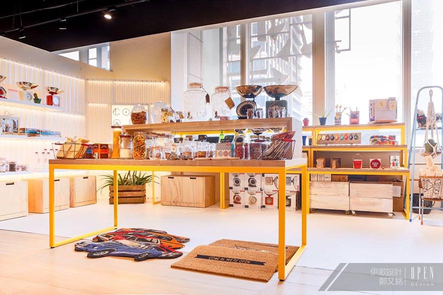 光照充裕的擺櫃一一陳列可愛且饒富設計感的商品,鮮黃木櫃以耀眼色感吸引來客目光,使用媒材最原始的質感,搭配活潑亦有朝氣的色彩表情,為此專屬空間演繹一股繽紛活力。