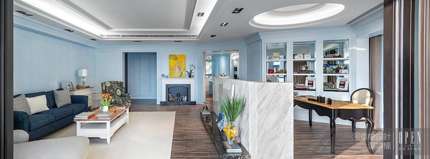,闡述了靈魂與空間對話的無限可能性,讓居家空間不單是供人遮風避雨的場所,提升至與心靈交談的高度。當融入這抹淡藍,好似也吐息了一口純淨。