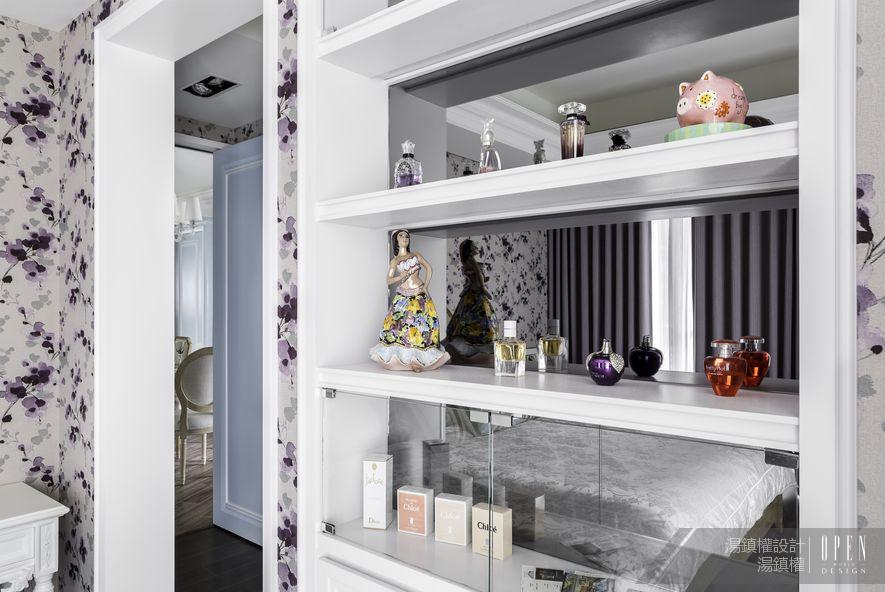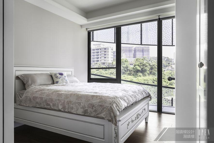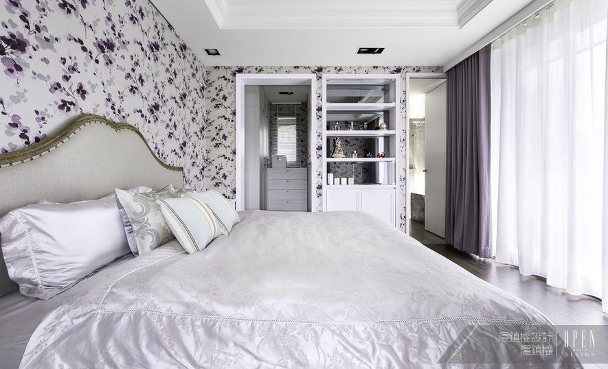 為了展現私密空間的特色,設計師別出心裁以浪漫色彩妝點臥房,簡潔的空間設計搭配鏡面,佐以床前大氣的窗面設置,使得場域更加開闊自然。絲質的寢具予人高雅感受,選用淡紫色為基調讓空間蒙上一層朦朧美感,使人不自覺流連其中,享受