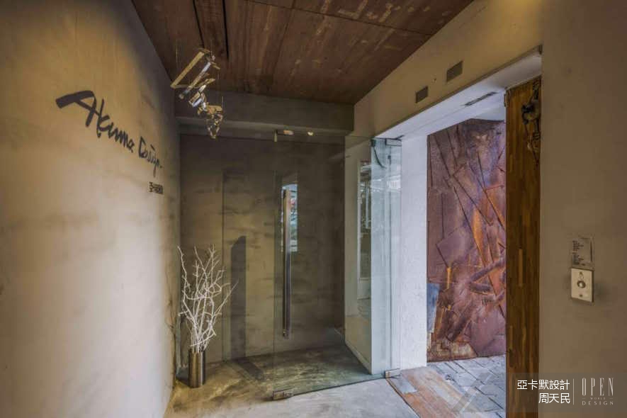 公司的門面代表每個對企業的第一印象,亞卡默辦公室將扭曲的金屬懸掛在天花板上,巧妙應用燈光投射,讓英文字母的公司名稱清楚呈現在大門口,富有藝術感的詮釋,讓辦公室內韻味無窮。