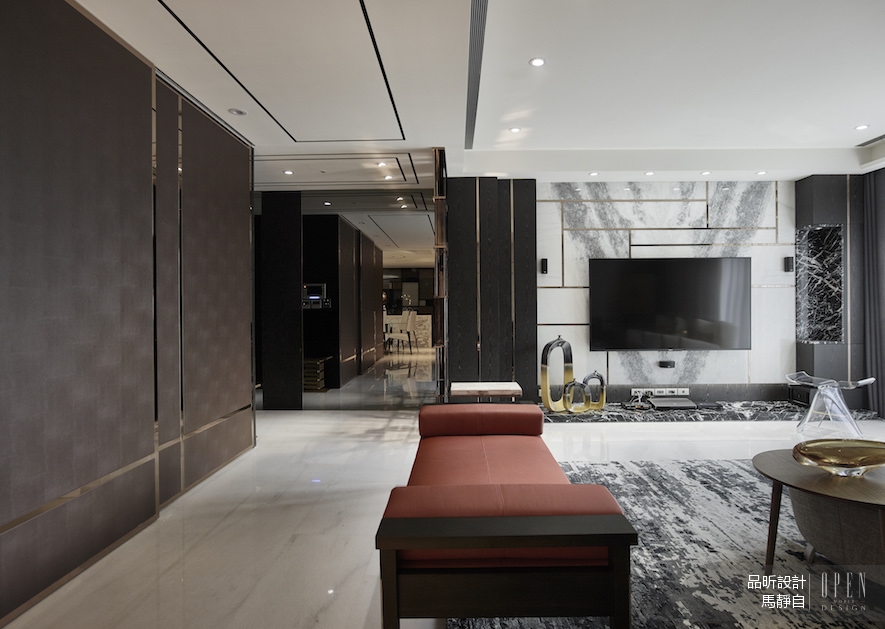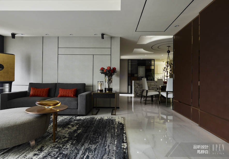運用水平垂直、交互、錯落的分割方式搭配多元材質,營造生動多層次的空間氛圍——品。