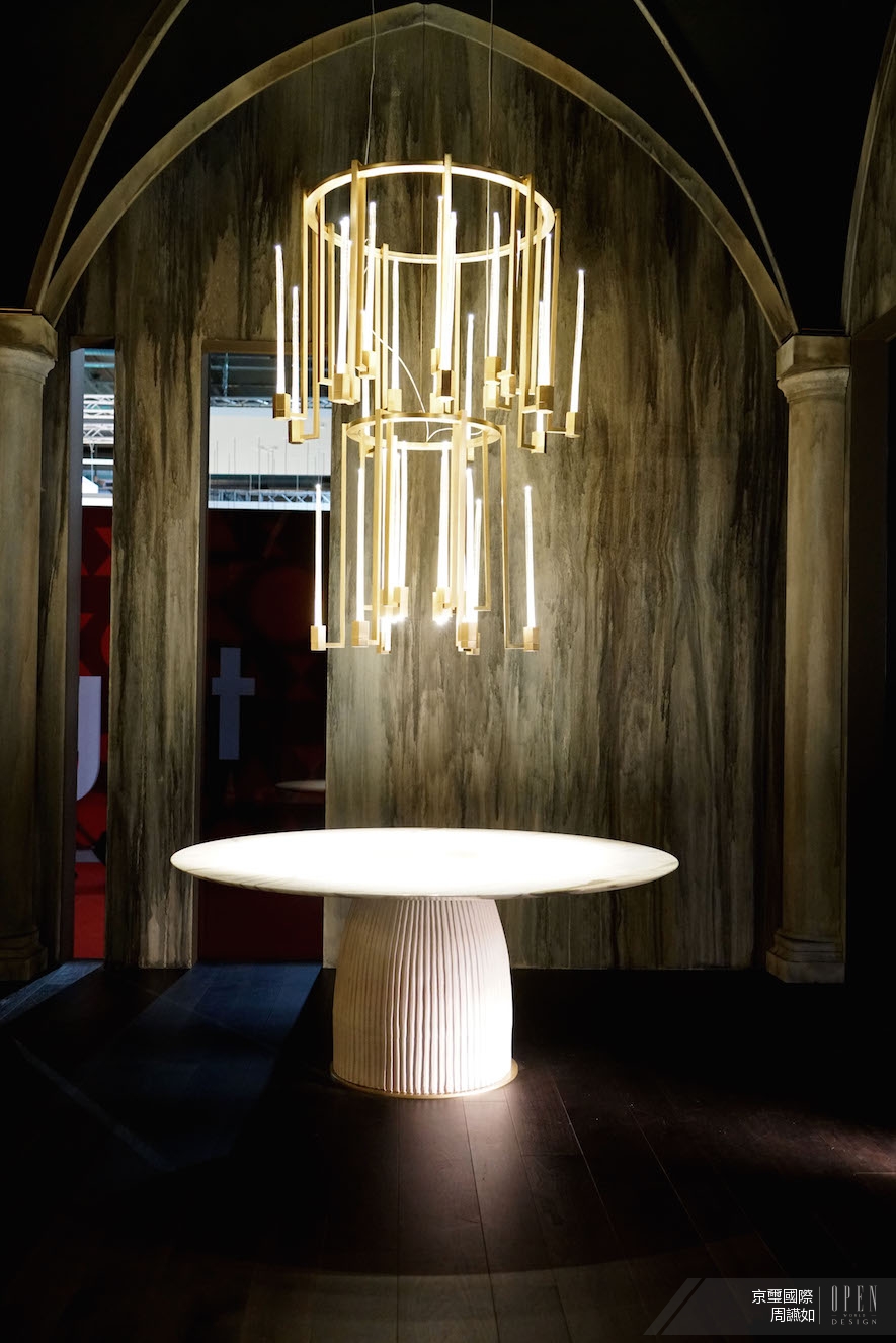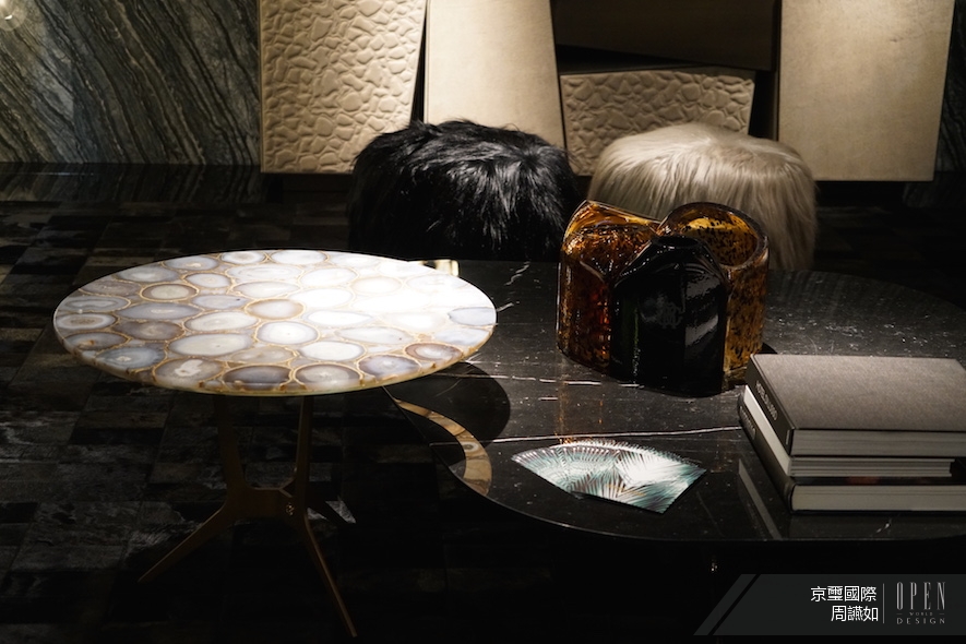 除了今年的燈具特展外,在會場中,周總監也看到大量異材質結合的運用,像是家具廣泛運用了大理石、瑪瑙石、寶石類檯面並結合金屬、皮革,讓空間多了一分高雅奢華。
