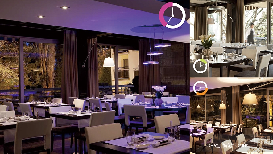(圖)餐廳案例,歐加團隊以自動化的燈光控制,可針對不同的時間和情況,做情境調整