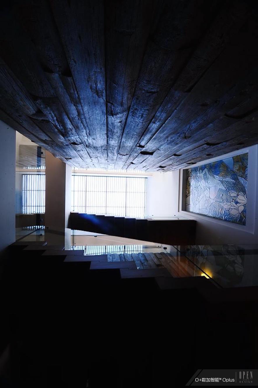 三樓的天窗是設計師的巧思,一整天中光線的變化穿透而至,與室內的智能燈光交疊,在兩種光影控制的配合下,於屋內形成千變萬化的美學藝術。深淺的色彩交織猶如宇宙中的銀河般柔和而閃耀,繪出空間的另一番樣貌。