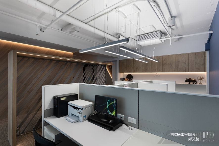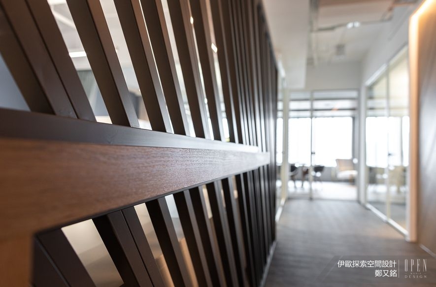 「生活中是有喜怒哀樂的,不應該是如此平淡。」伊歐探索空間設計 鄭又銘 設計總監與其設計團隊 致力為業主打造愉快的空間情境,此次發揮長年鑽研的色彩美學調和辦公氣氛,並細心安排木質構件的比例,讓使用者踏入公司的第一步成為化解睏倦的開始;搭載舒適通透的挑高設計及玻璃隔間,由空間引領使用者開敞心胸,如同開啟整體迴路的開關,讓每個元件自得其所同時產生歡樂不斷的辦公體驗。