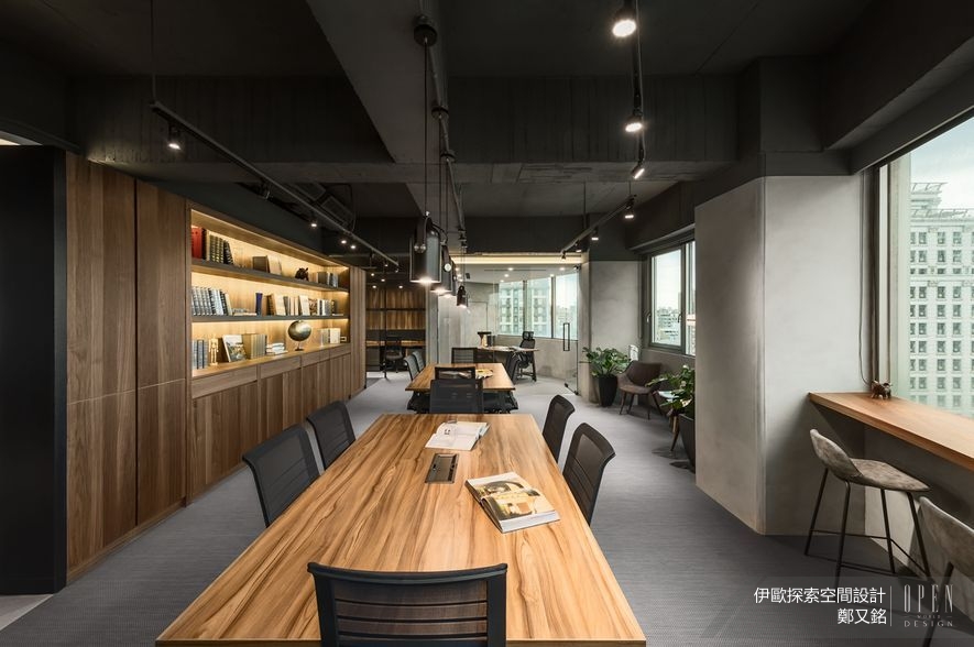 在充沛的採光優勢下,位於辦公區一側的休憩區,結合吧台、邊桌、長桌三種桌型,帶來不同氛圍的放鬆模式。遼闊的窗景及隨處可見的植栽,讓人身心備感放鬆,一掃工作中的辛勞。印象中嚴肅的辦公空間亦多了一份柔軟,同仁間的關係因此產生連結,空間不再只是單一機能,而是成為能夠融入生活的多元場域。