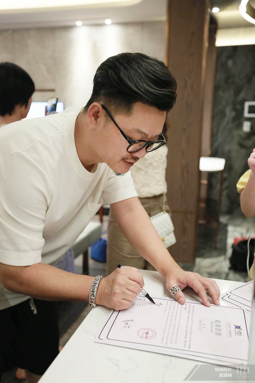 (圖)總監替參與活動的青年設計者一一簽名,作為這趟遊學之旅的有力認證。