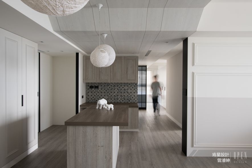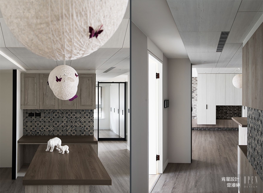 肯星設計 曾濬紳 設計總監 本次再度採用素描般的輕柔筆觸,以典雅藍紫為中心,於天然實木及文化石間低調暈染彩度,將生活中的嘈雜聲色收束於此靜謐之境;並納入柔和且簡約的空間線條,規劃出風光暖意自由流淌的開放格局,最後再綴上幾筆古典元素,使之宛如生活場景的美好速寫;看來輕巧簡單,卻每一筆畫都按耐到位,讓居住其中的人們深刻感受:「日常」正是因其清新無艷,因此深刻動人。