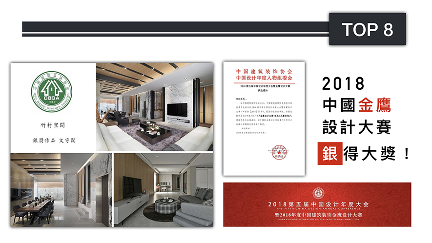 為促使行業間文化藝術與科學技術的深度結合,「中國建築裝飾協會」舉辦「金鷹設計大賽」,鼓勵更多優秀人才投入設計領域。來自台灣的魏立彥總監,此次參賽作品《文守閣》融匯現代機能美學於雅緻氛圍,構築優雅大氣韻致,一舉摘下別墅空間類別「銀獎」殊榮,將品牌的堅強實力展演於眾人面前!