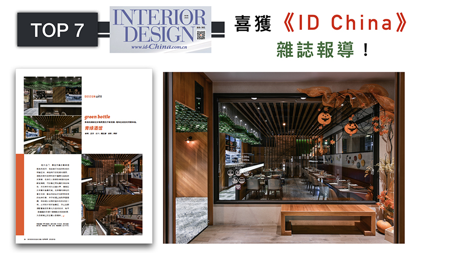 中國建築學會室內設計分會(CIID)會刊,與被譽為全球最佳室內設計雜誌的美國INTERIOR DESIGN 合作,精心策劃每一期Interior Design China,為眾多讀者帶來設計界的重要信息與靈感。而魏立彥總監,以揉和歐式餐館與台式街道的人文之作《JONE餐酒館》,榮登2019/07.08月份雜誌版面,將花紋磚與玻璃酒瓶搭配的絕妙,傳遞給無數熱愛設計的人。